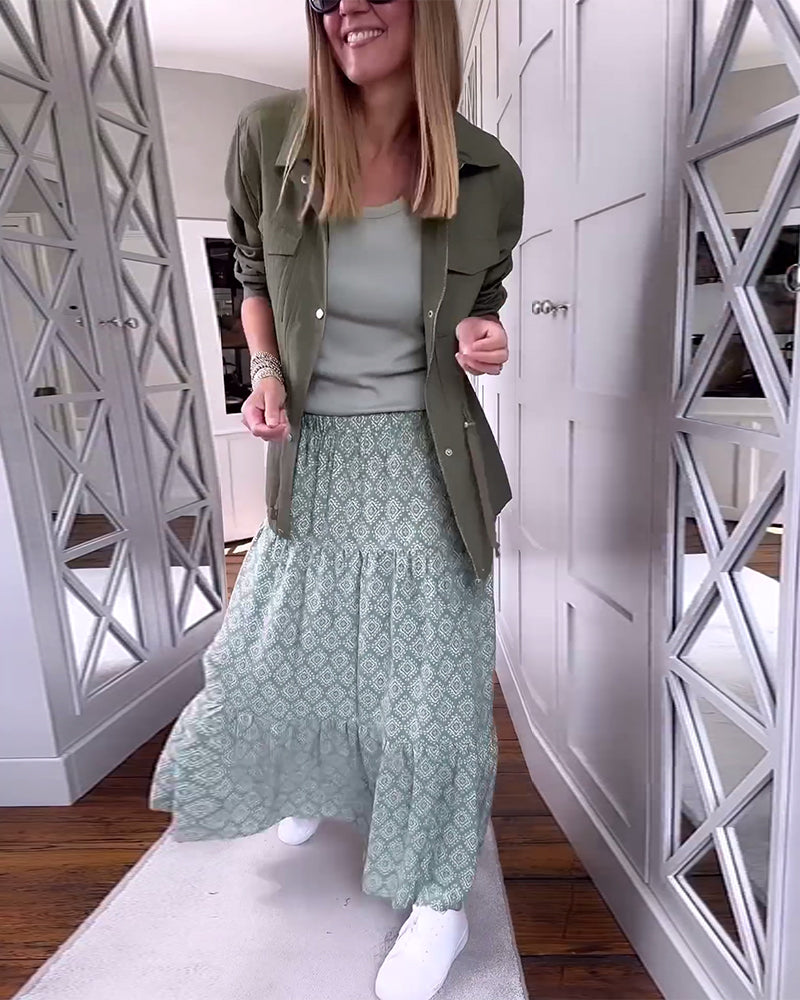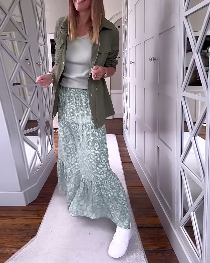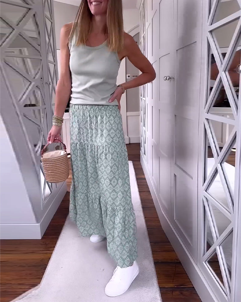 Casual printed patchwork pleated dress
