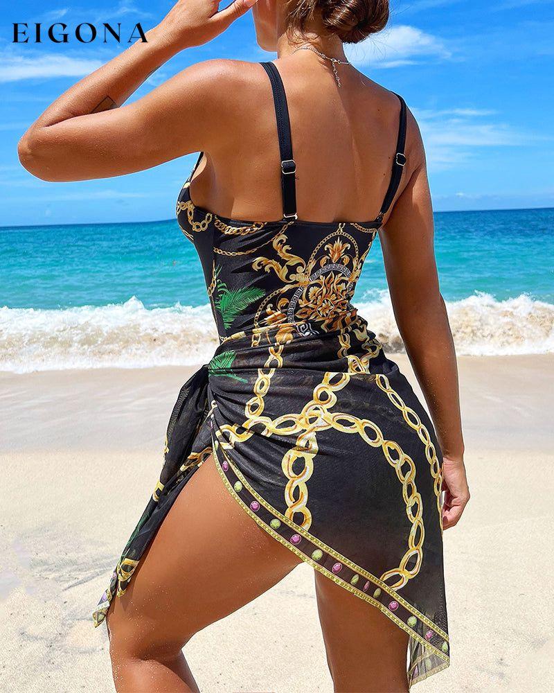 Chain Print Push Up One Piece Swimsuit With Beach Skirt