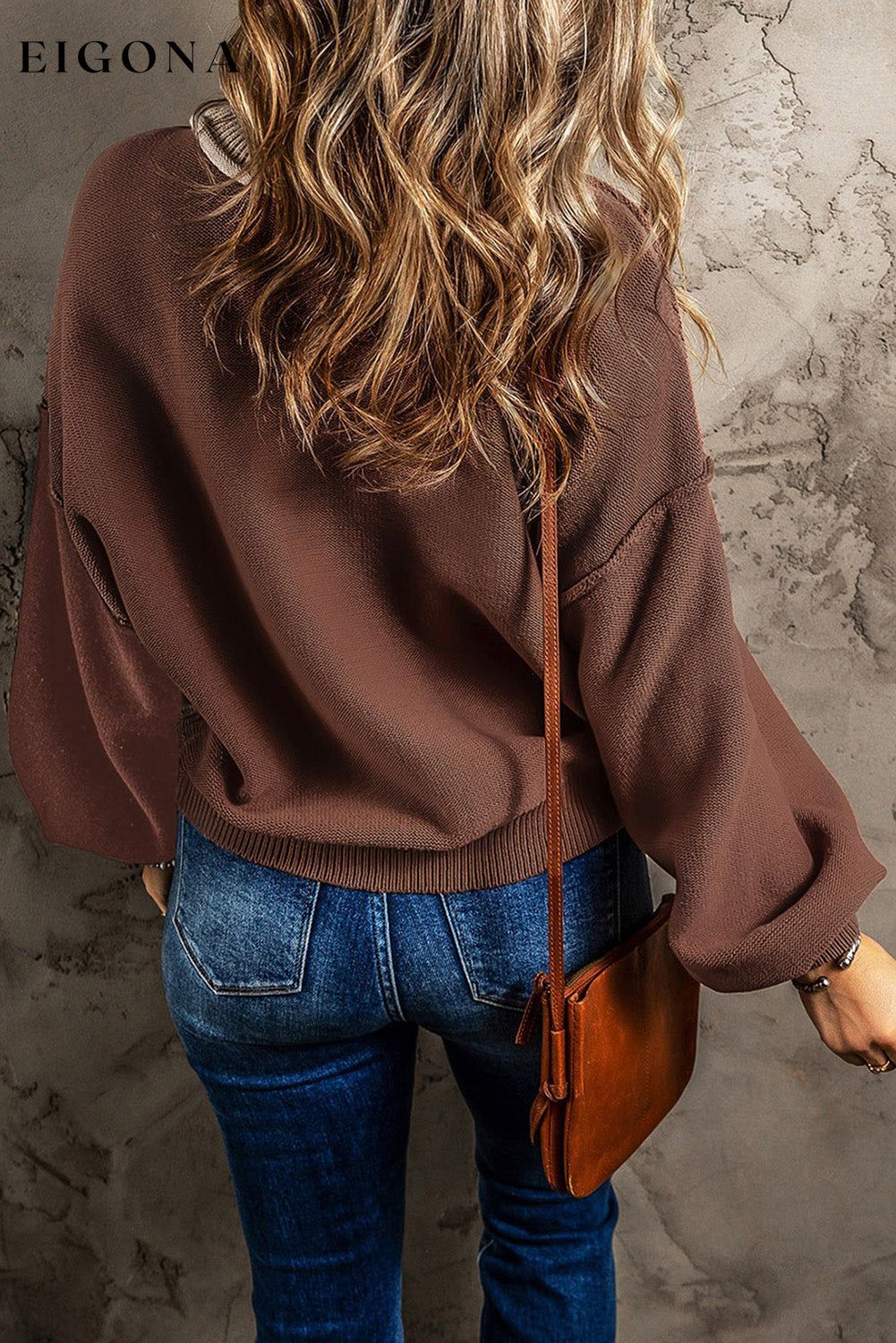 Chicory Coffee Color Block Exposed Seam Loose Fit Sweater