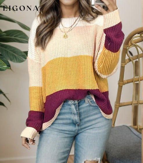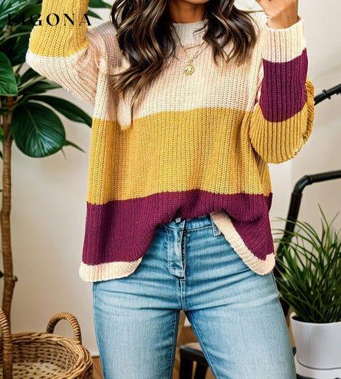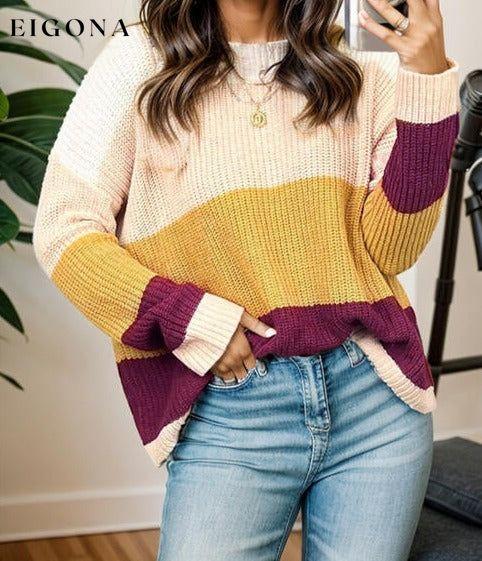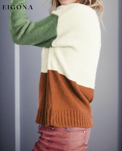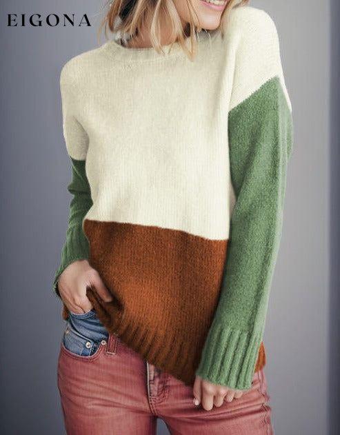 Color Block Round Neck Long Sleeve Sweater
