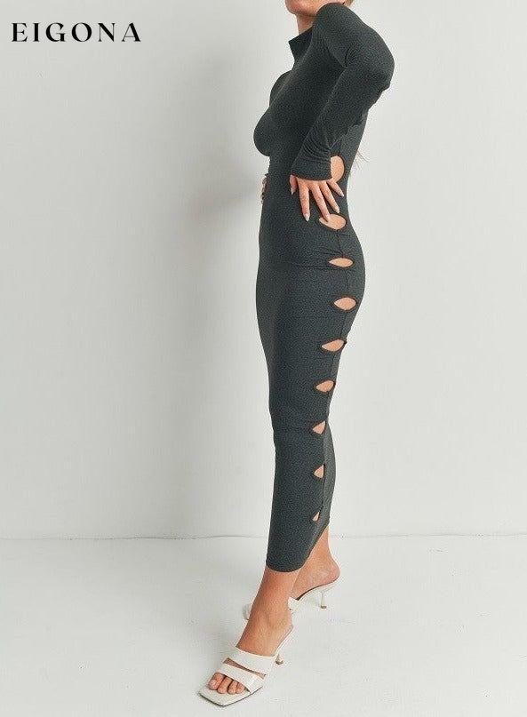 Cutout Detail Turtleneck Long Sleeve Maxi Dress
