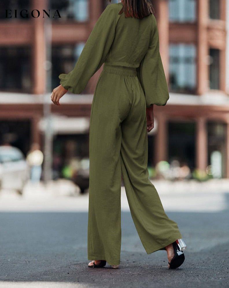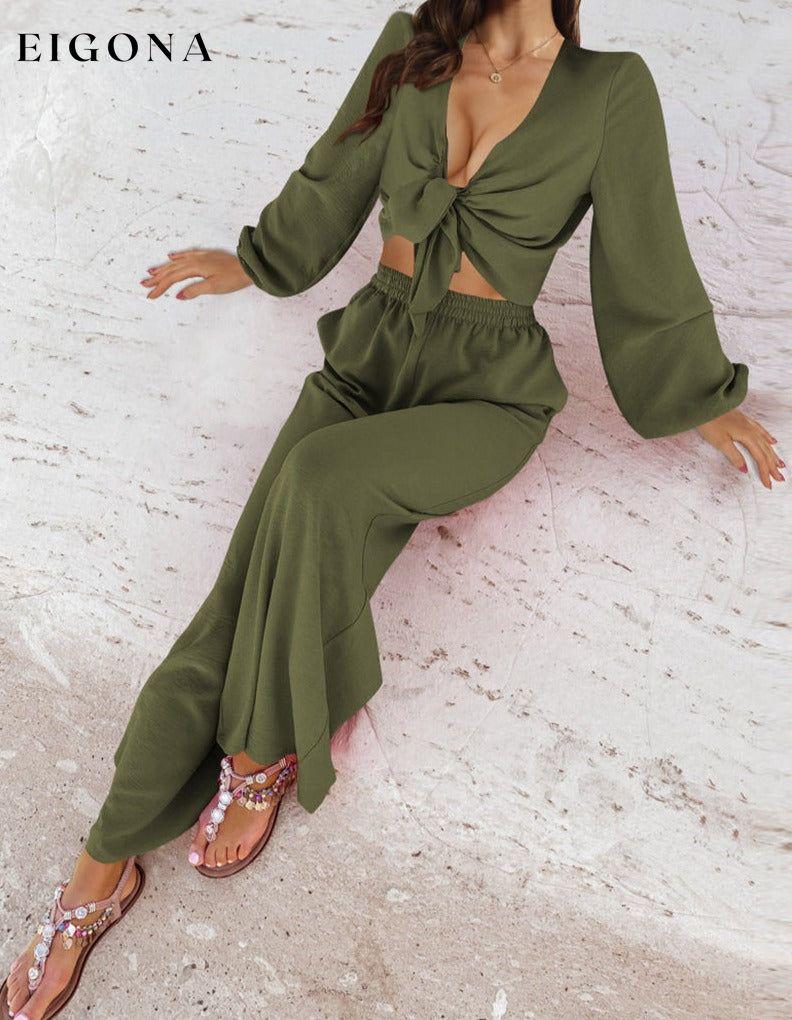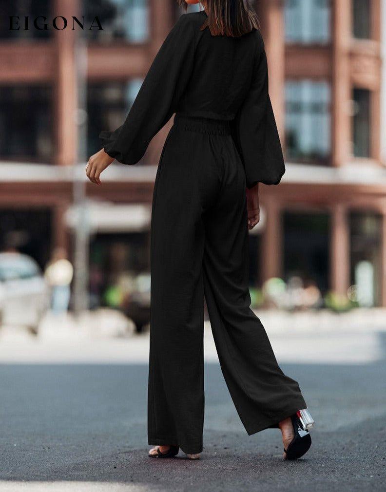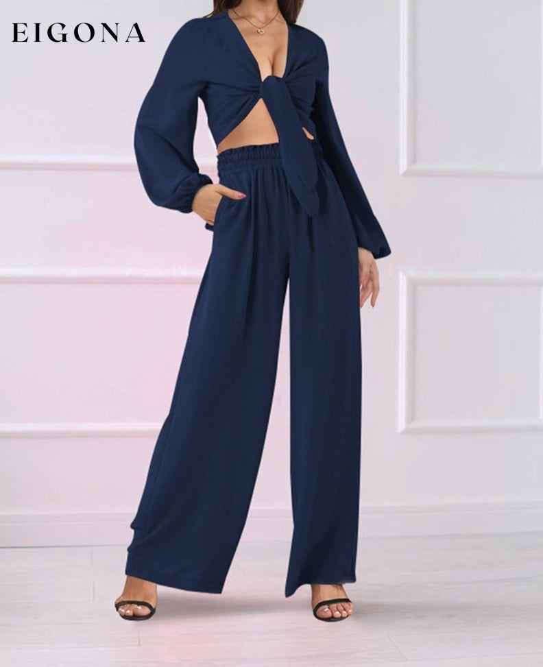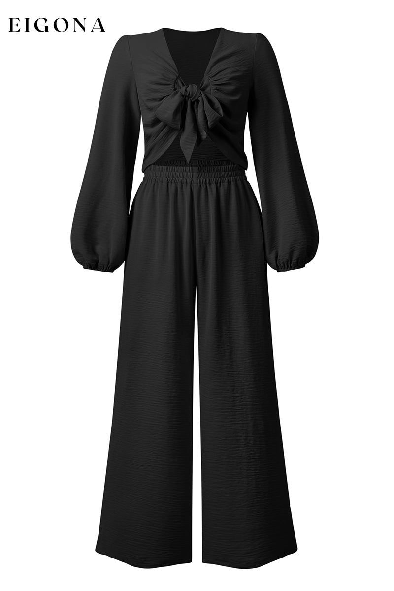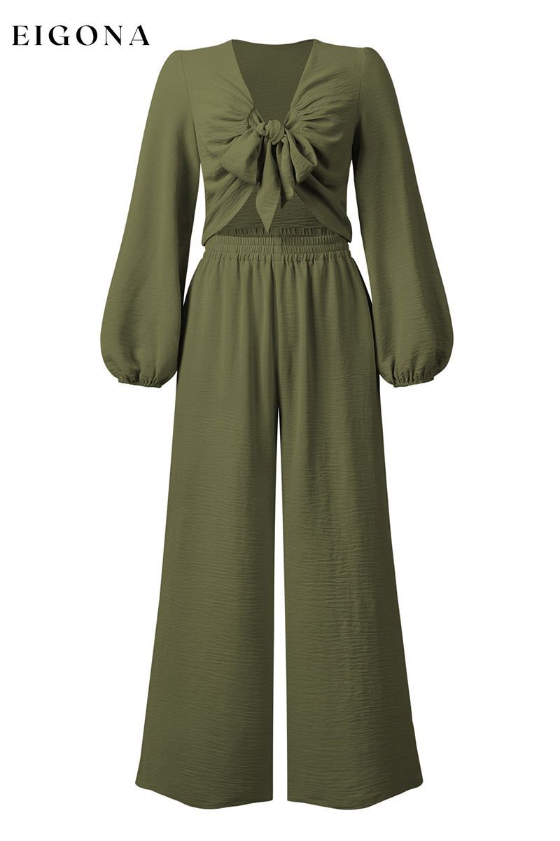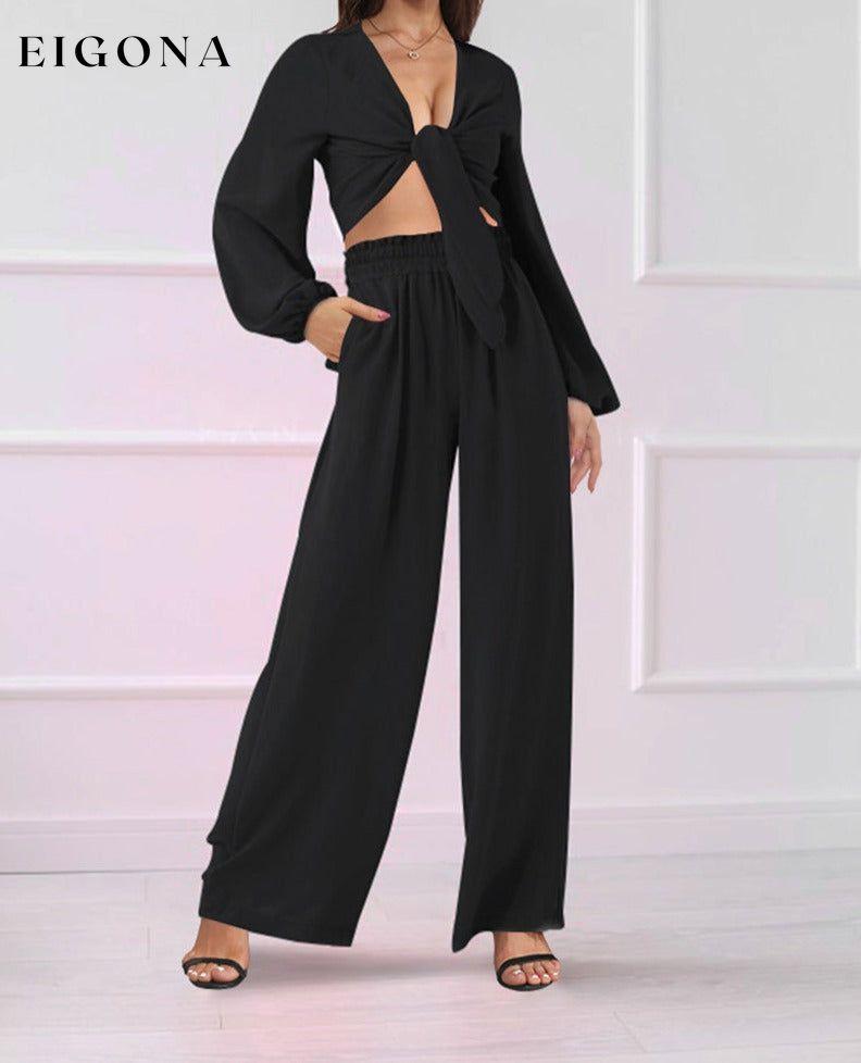Cutout Long Sleeve Top and Wide Leg Pants Set
