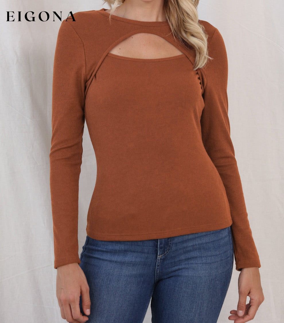 Cutout Round Neck Long Sleeve Top