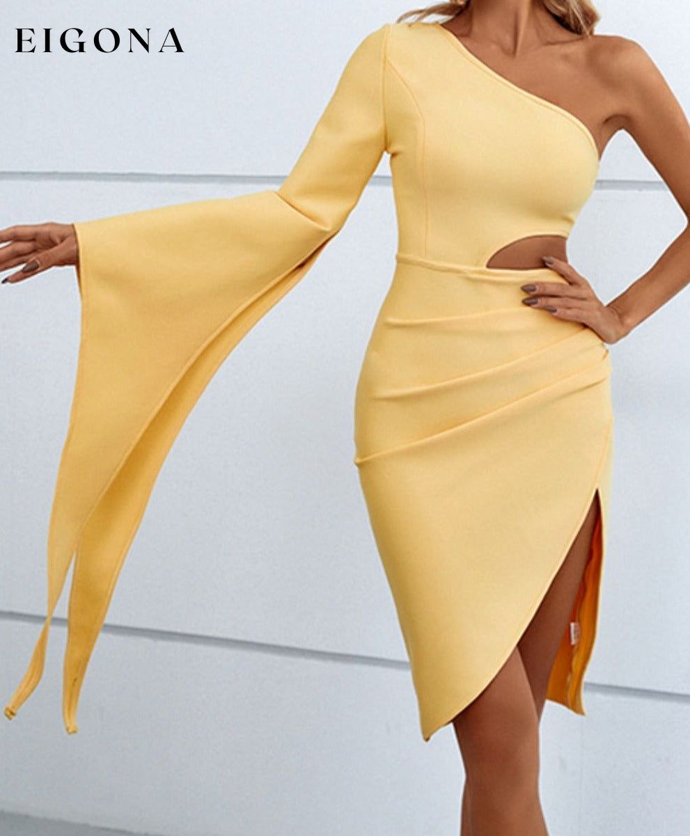 Cutout Split Flare Sleeve One-Shoulder Dress