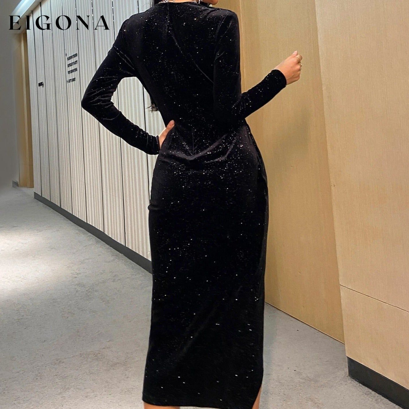 Double Crazy Wrap Detail Glitter Velvet Dress