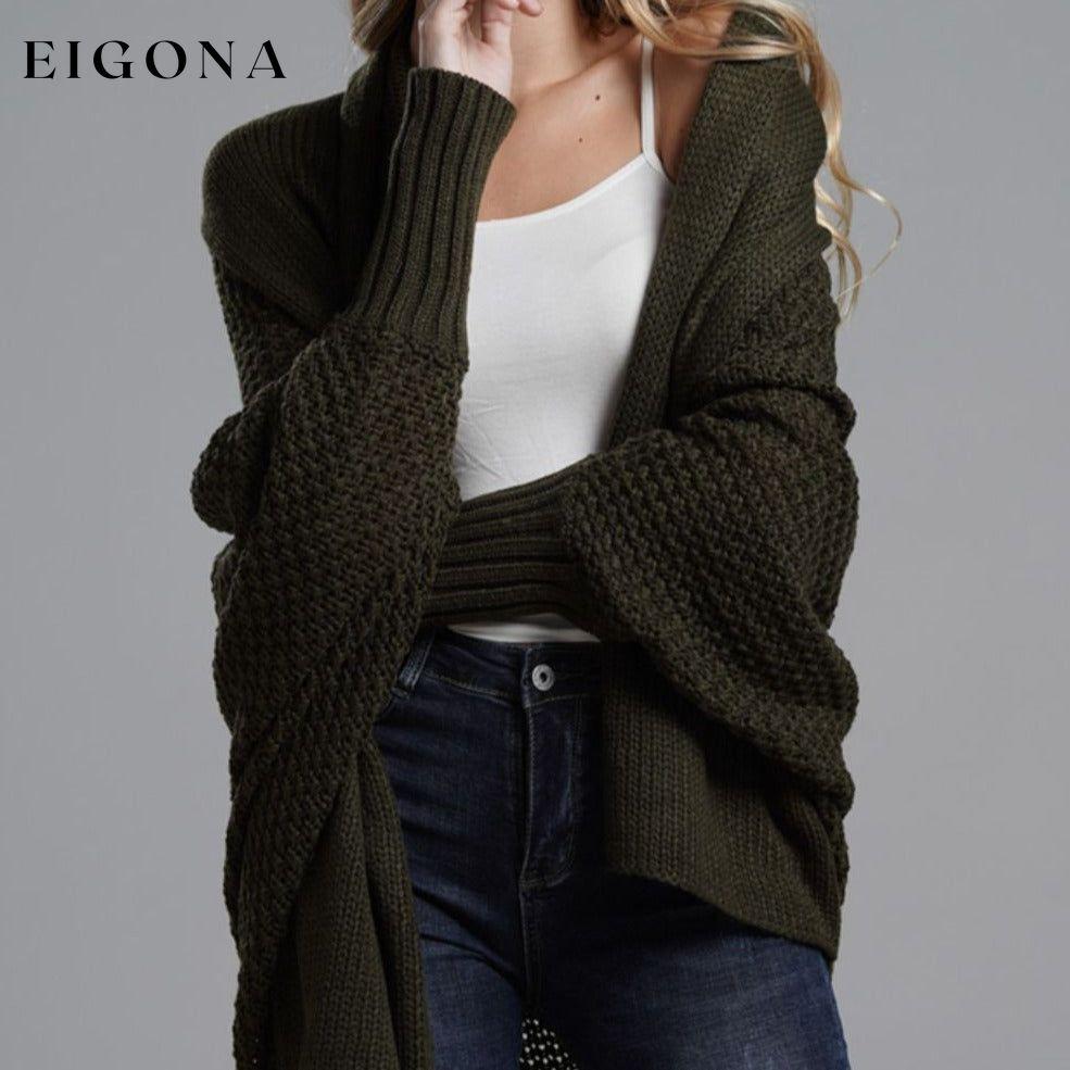 Double Take Sleeve Open Front Ribbed Trim Longline Cardigan