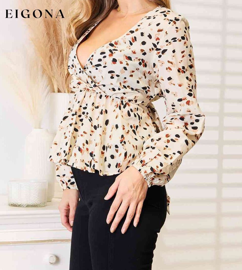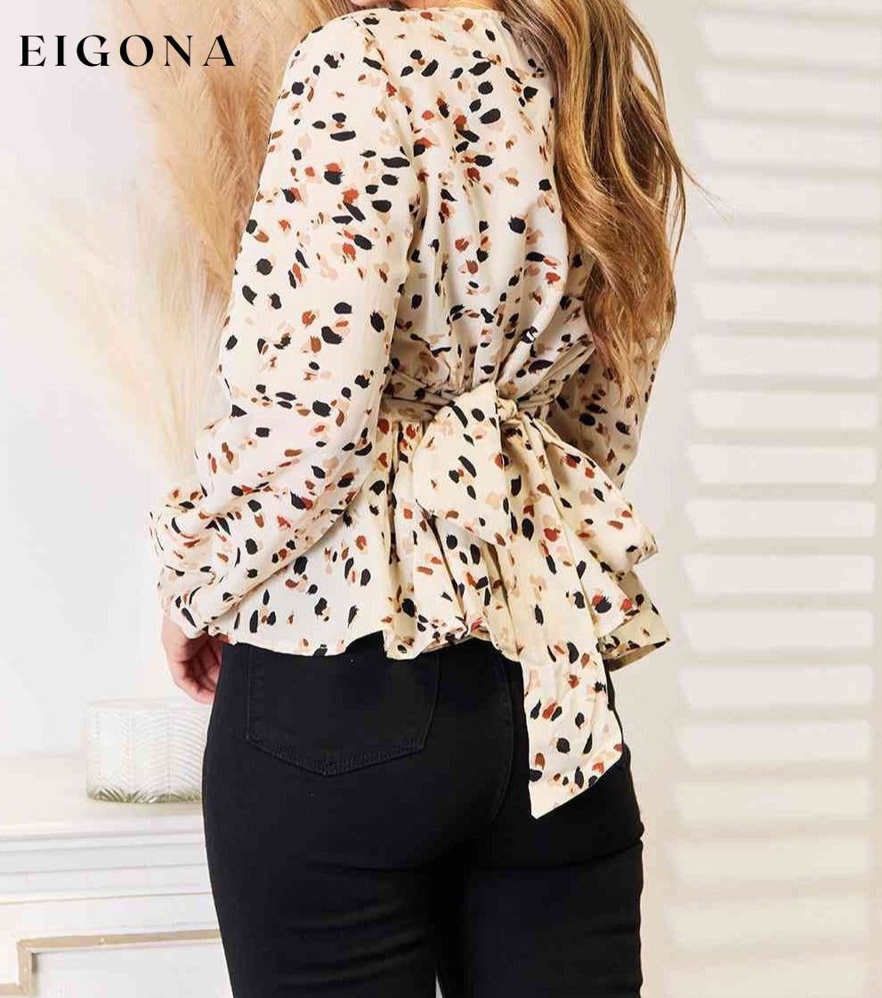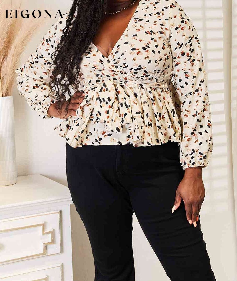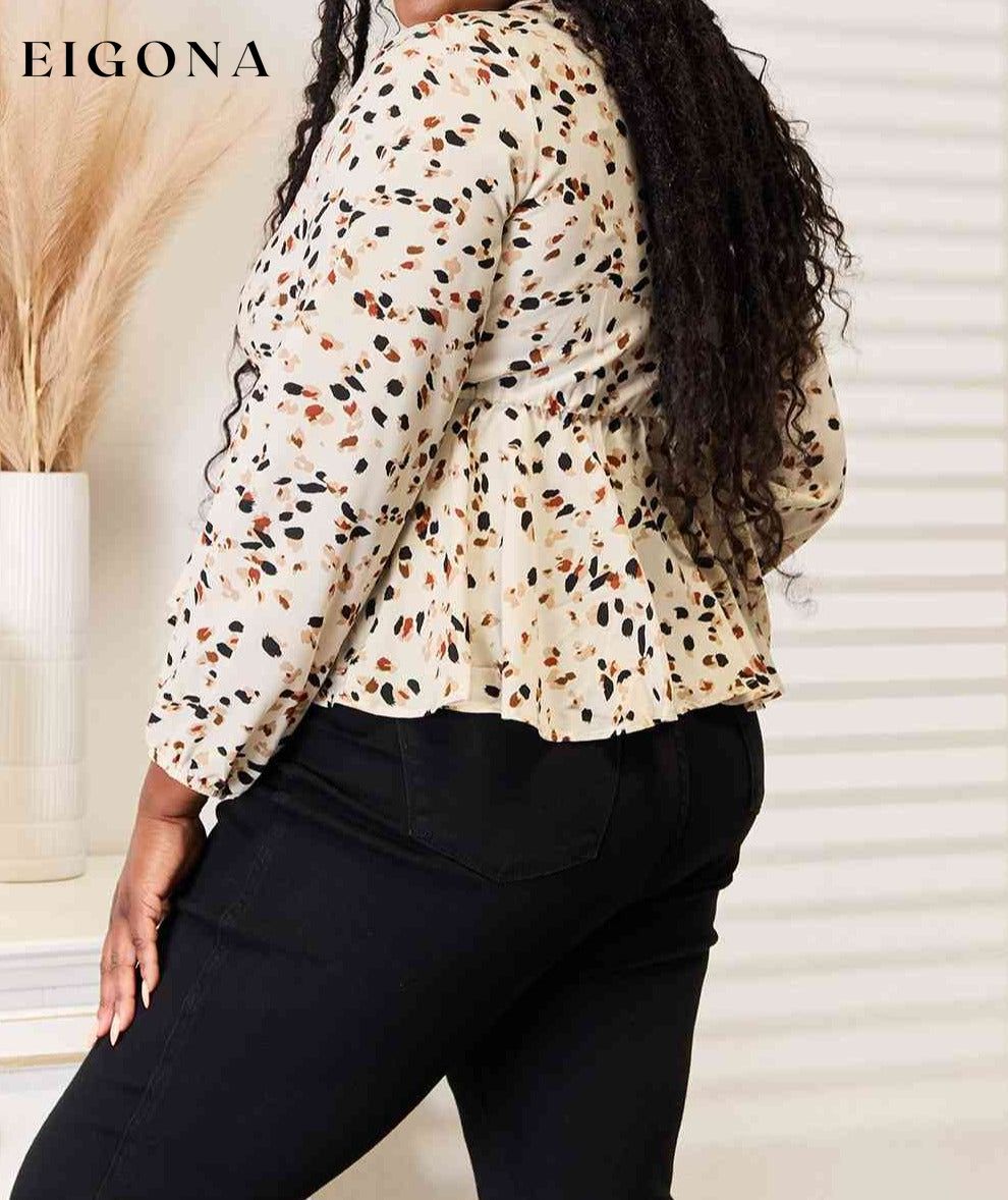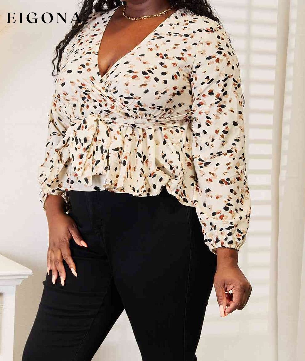 Make a bold and stylish statement with this printed tied plunge peplum blouse. The vibrant print adds a playful and eye-catching element to this blouse, while the tied detail and plunging neckline create a flattering and feminine look. The peplum silhouette adds a touch of elegance and sophistication. This blouse is perfect for expressing your unique sense of style.