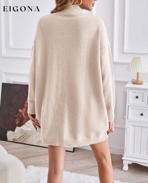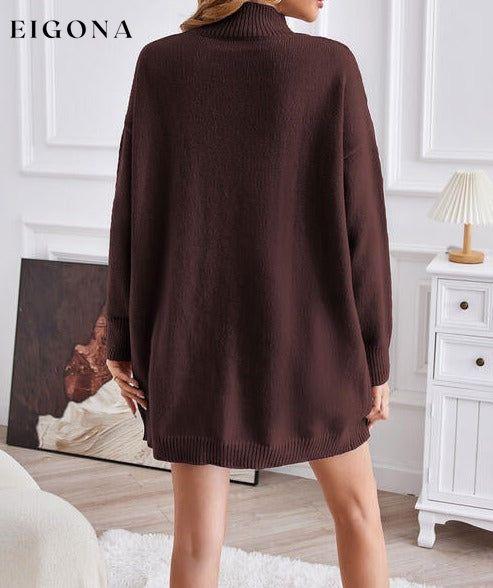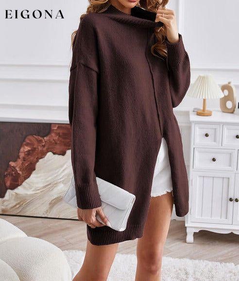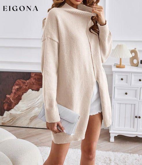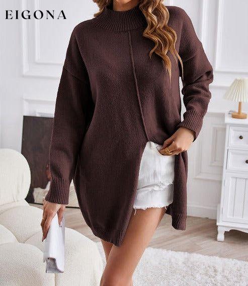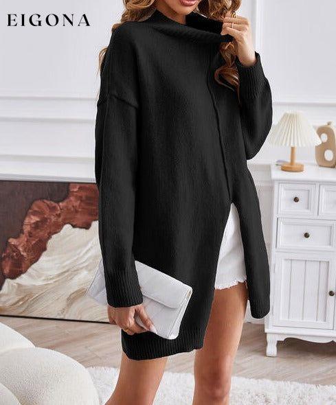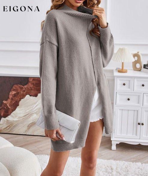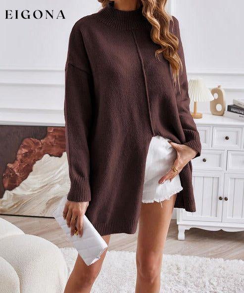 Exposed Seam Mock Neck Slit Sweater