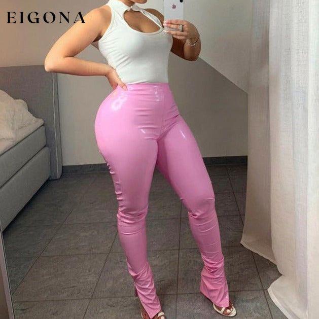 Feminine Slim High Waist Elastic PU Leather Pants
