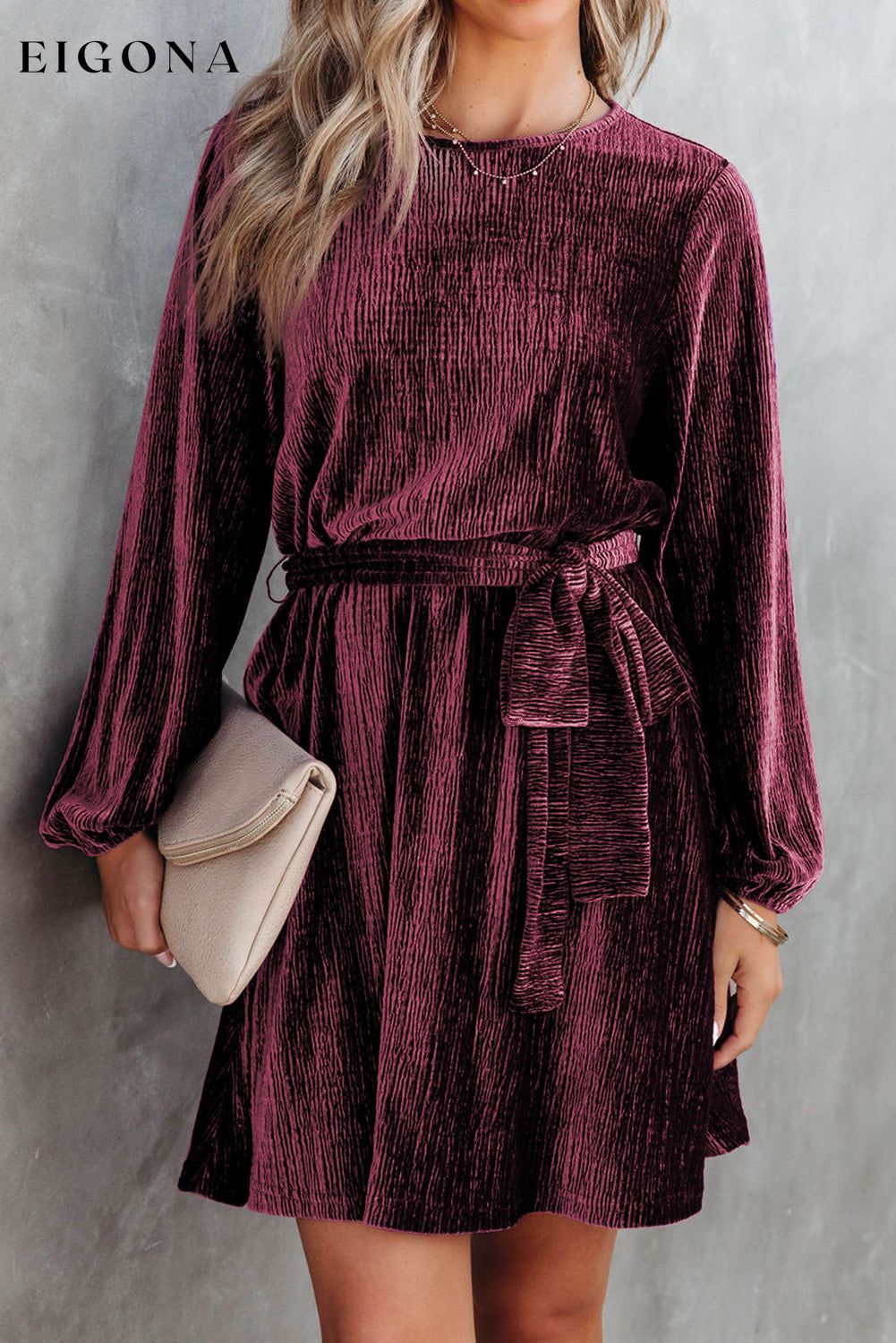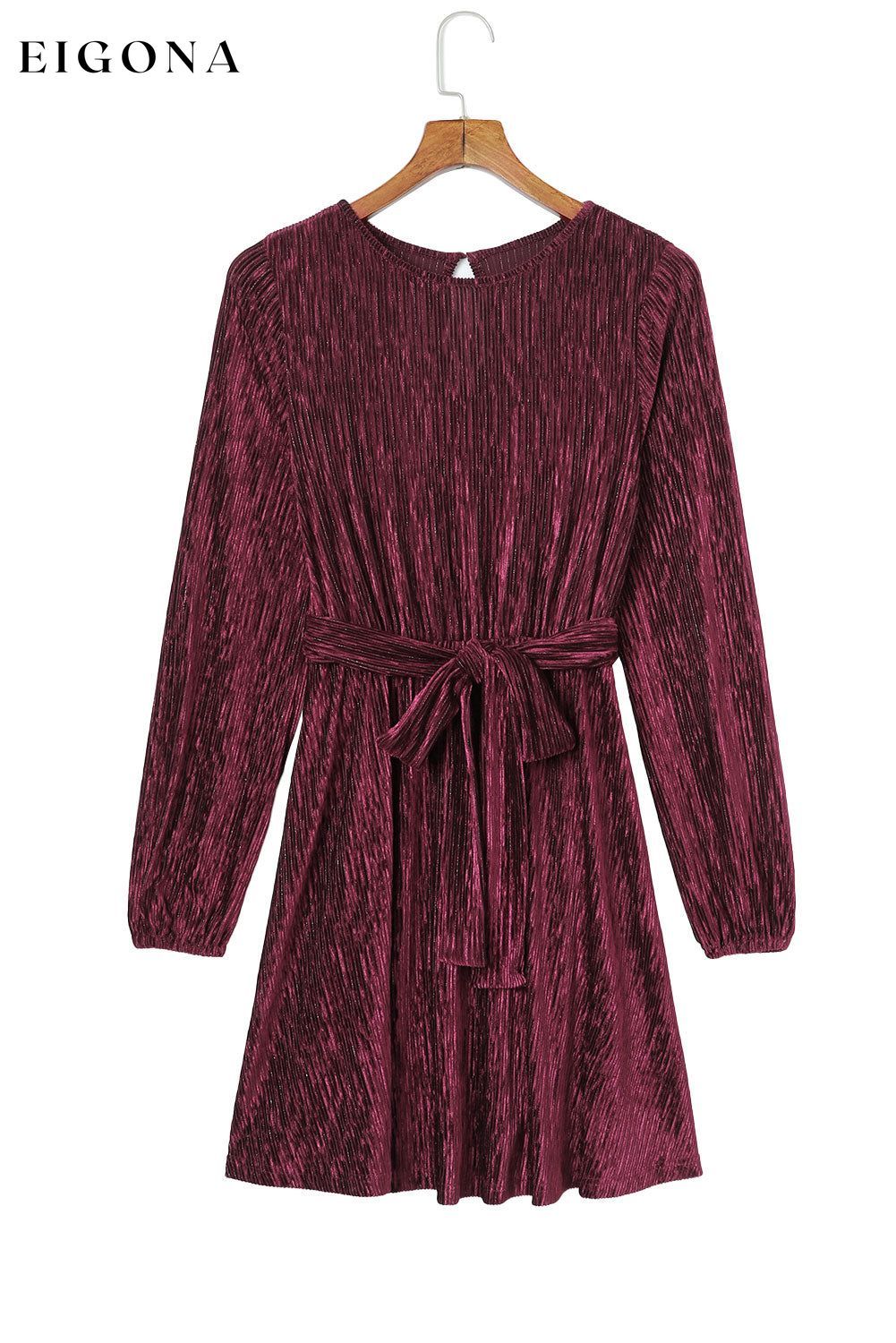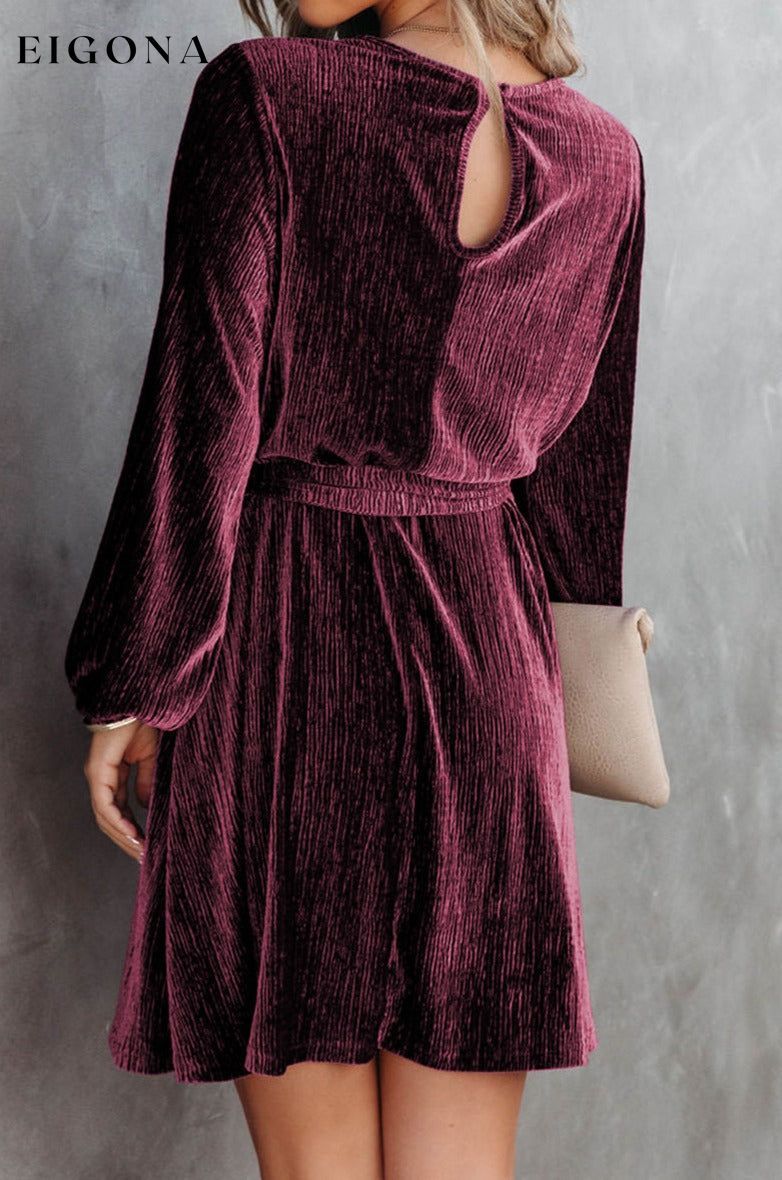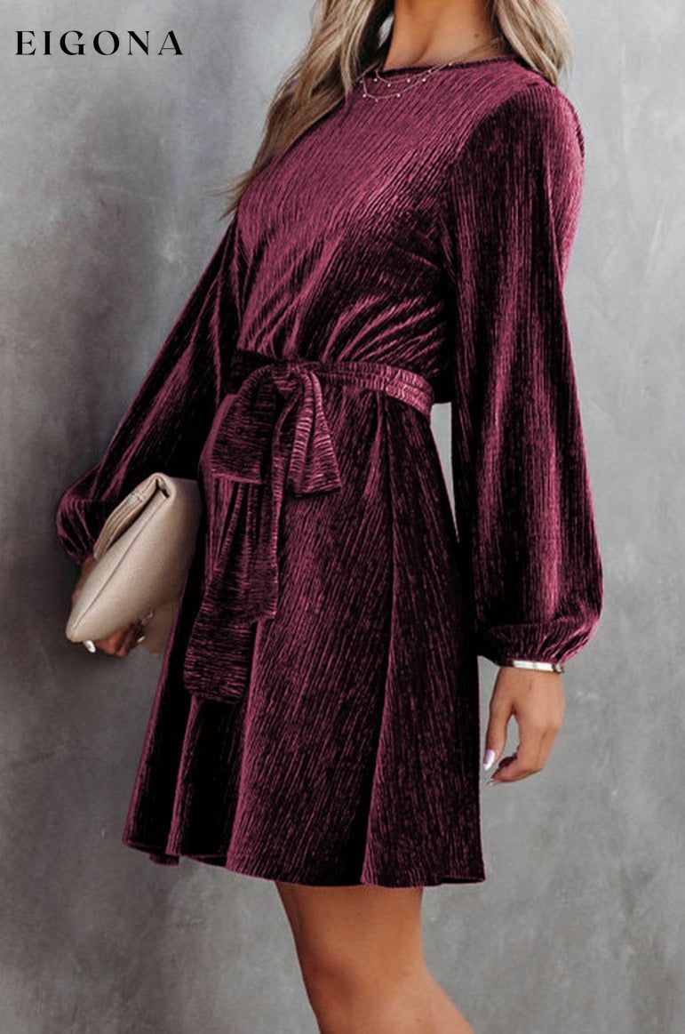 Fiery Red Tie Waist Crinkle Velvet Dress