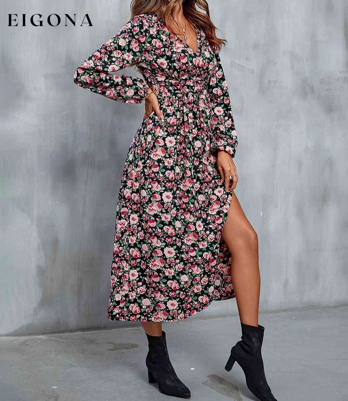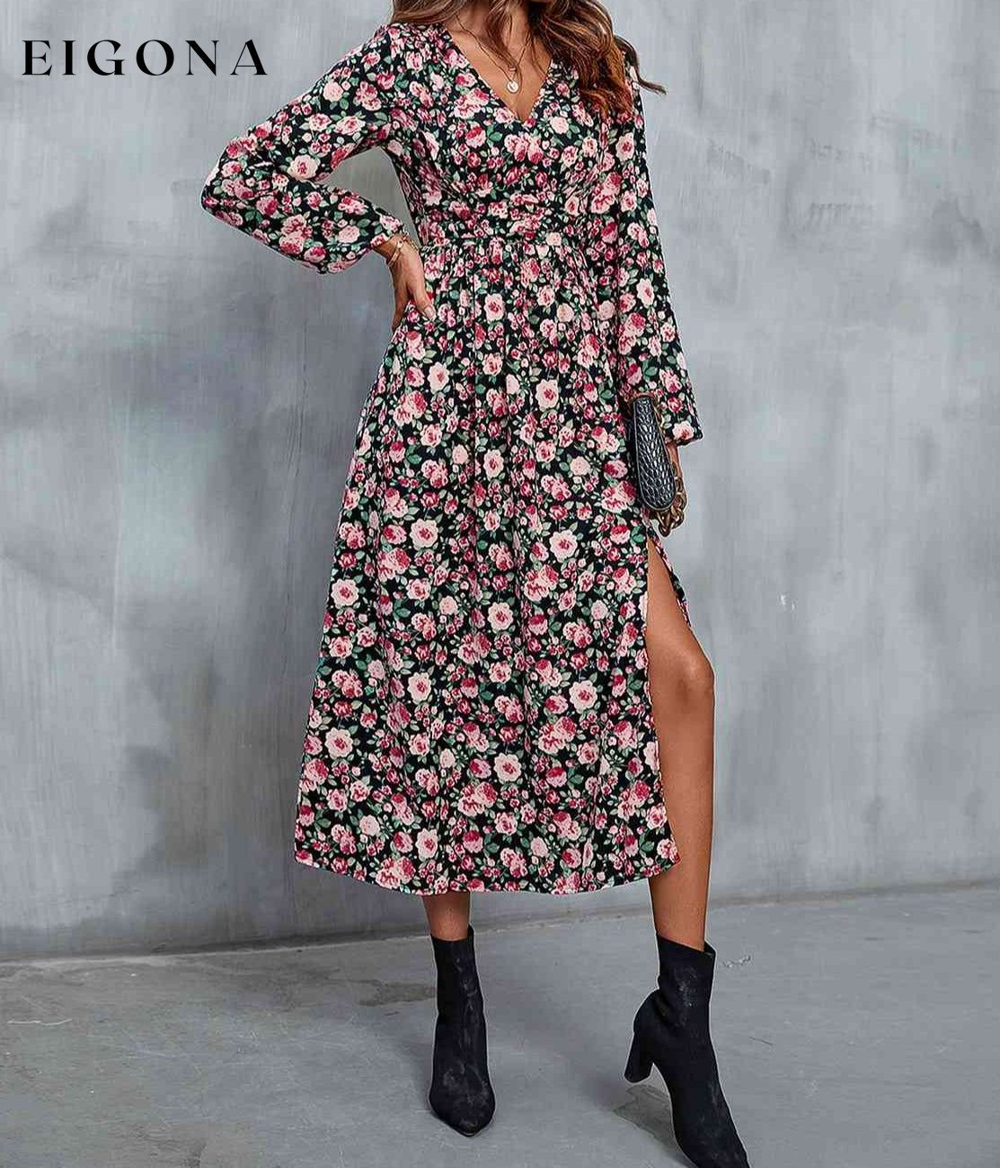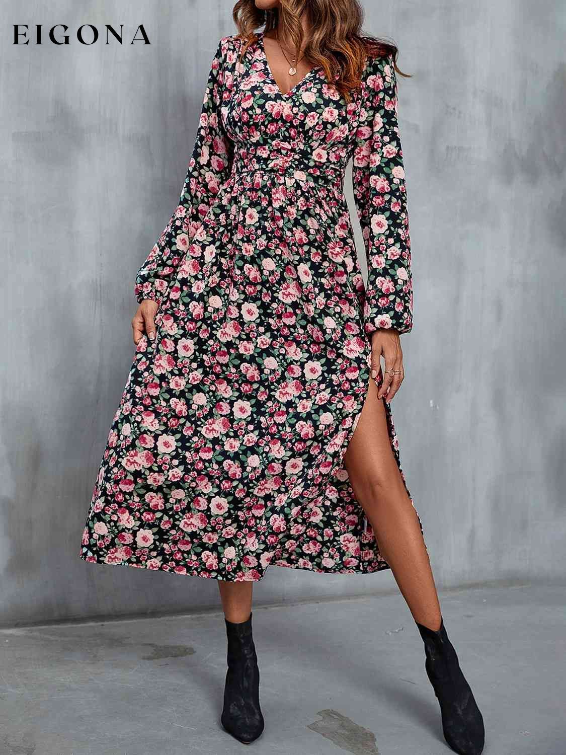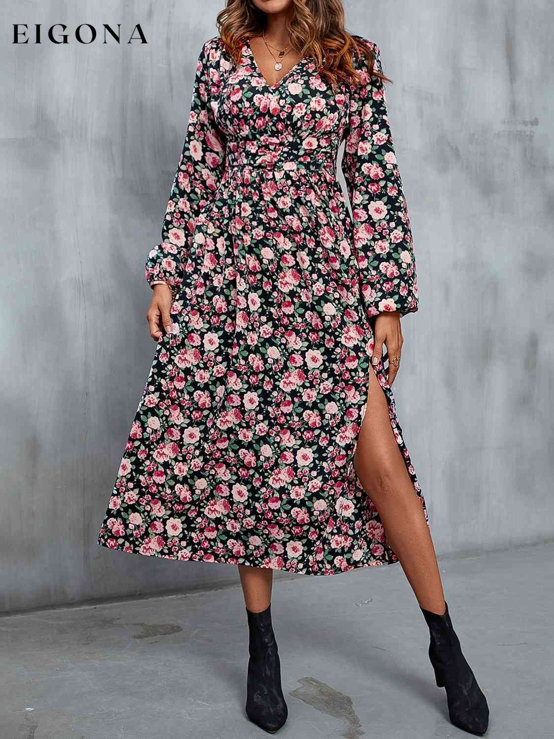 Floral V-Neck Slit Midi Dress
