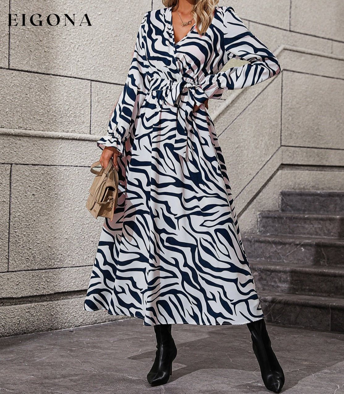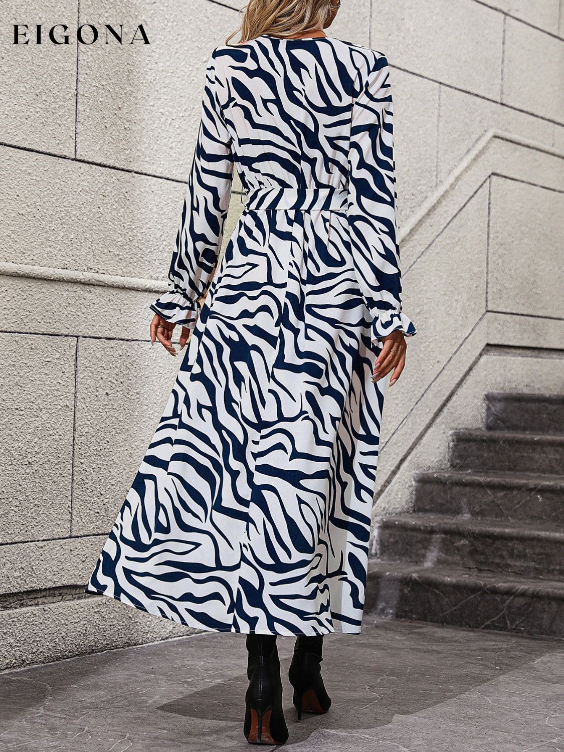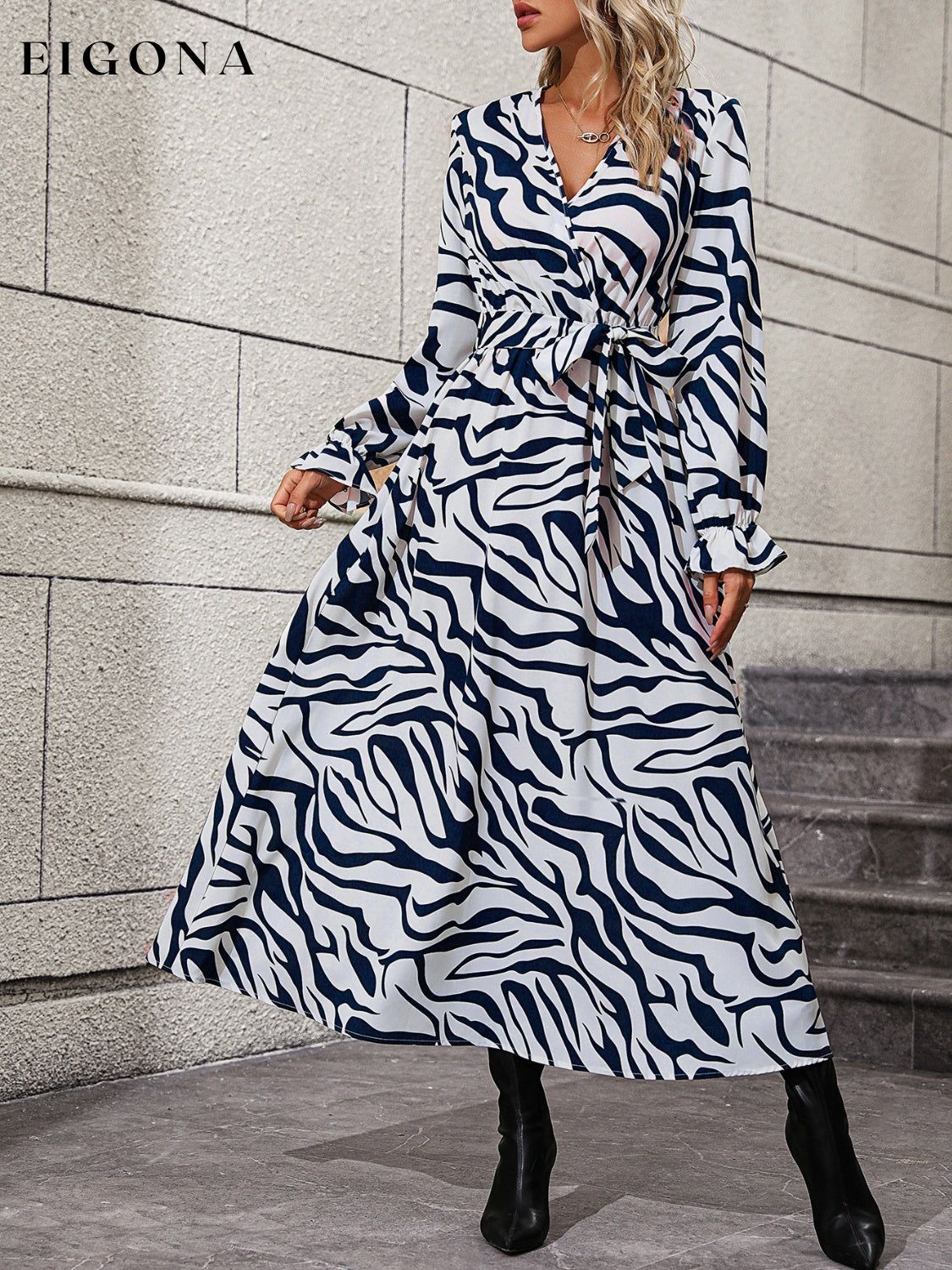 Flounce Sleeve Tie Waist Dress