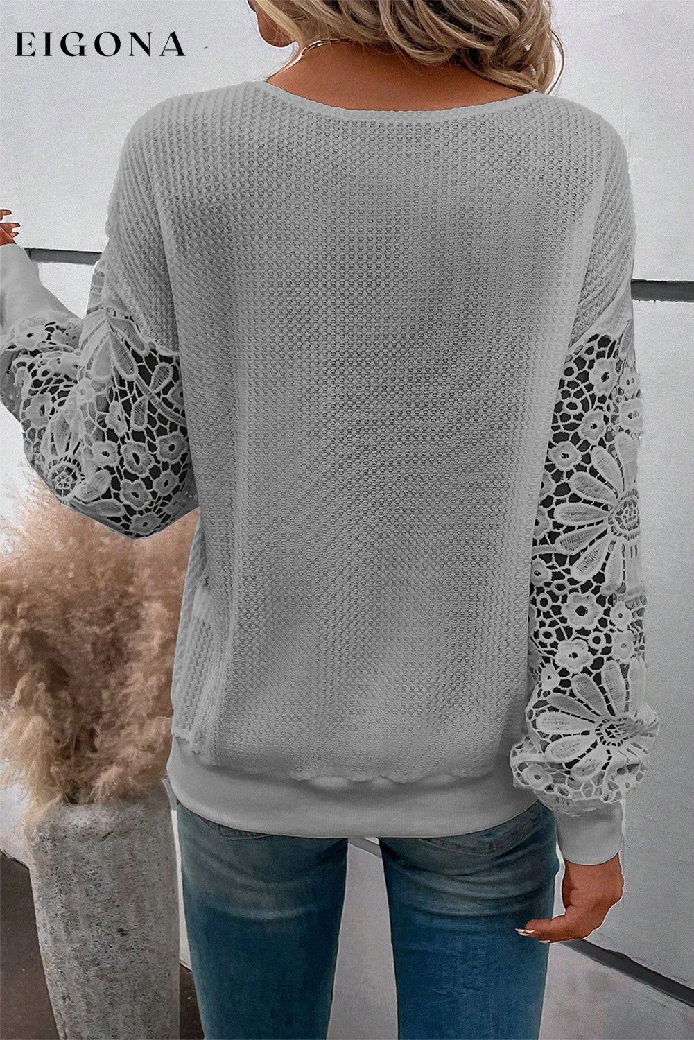 Gray Lace Splicing V Neck Puff Sleeve Top
