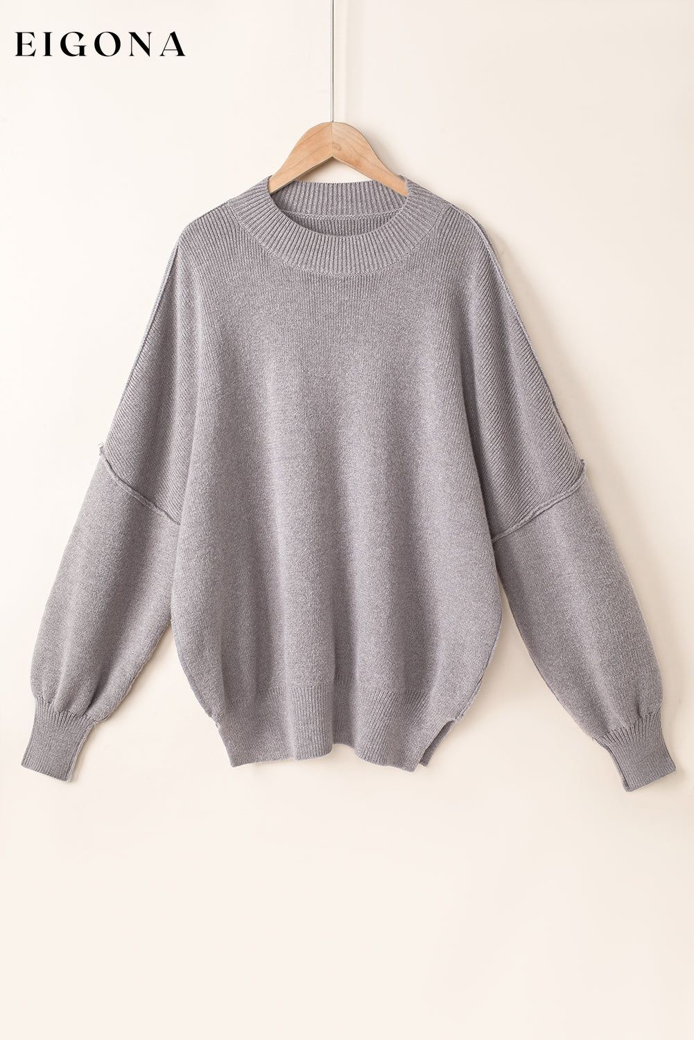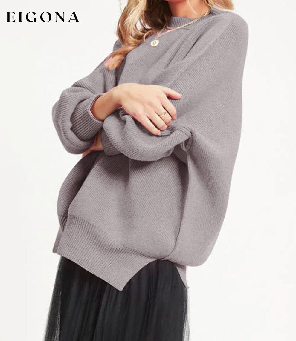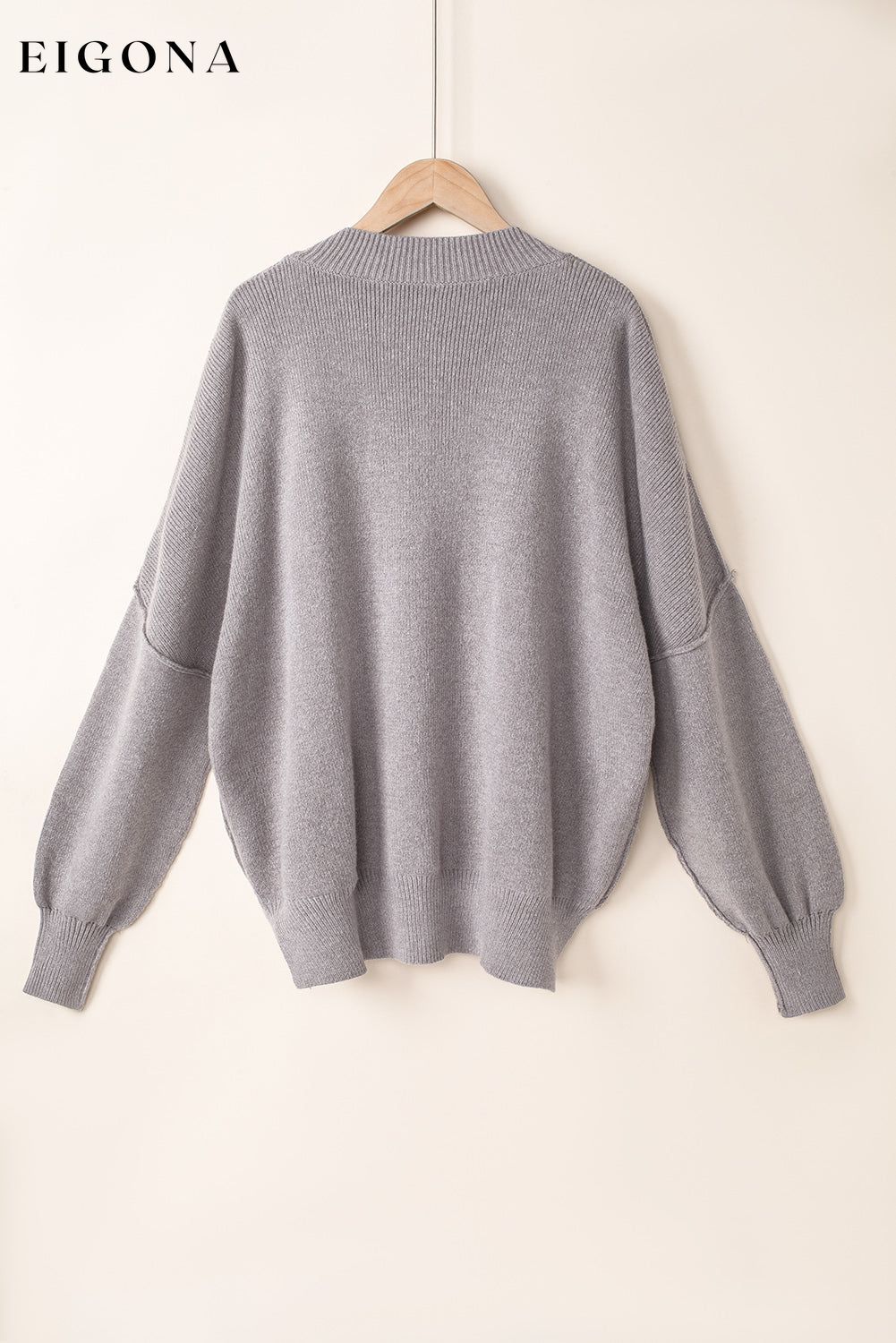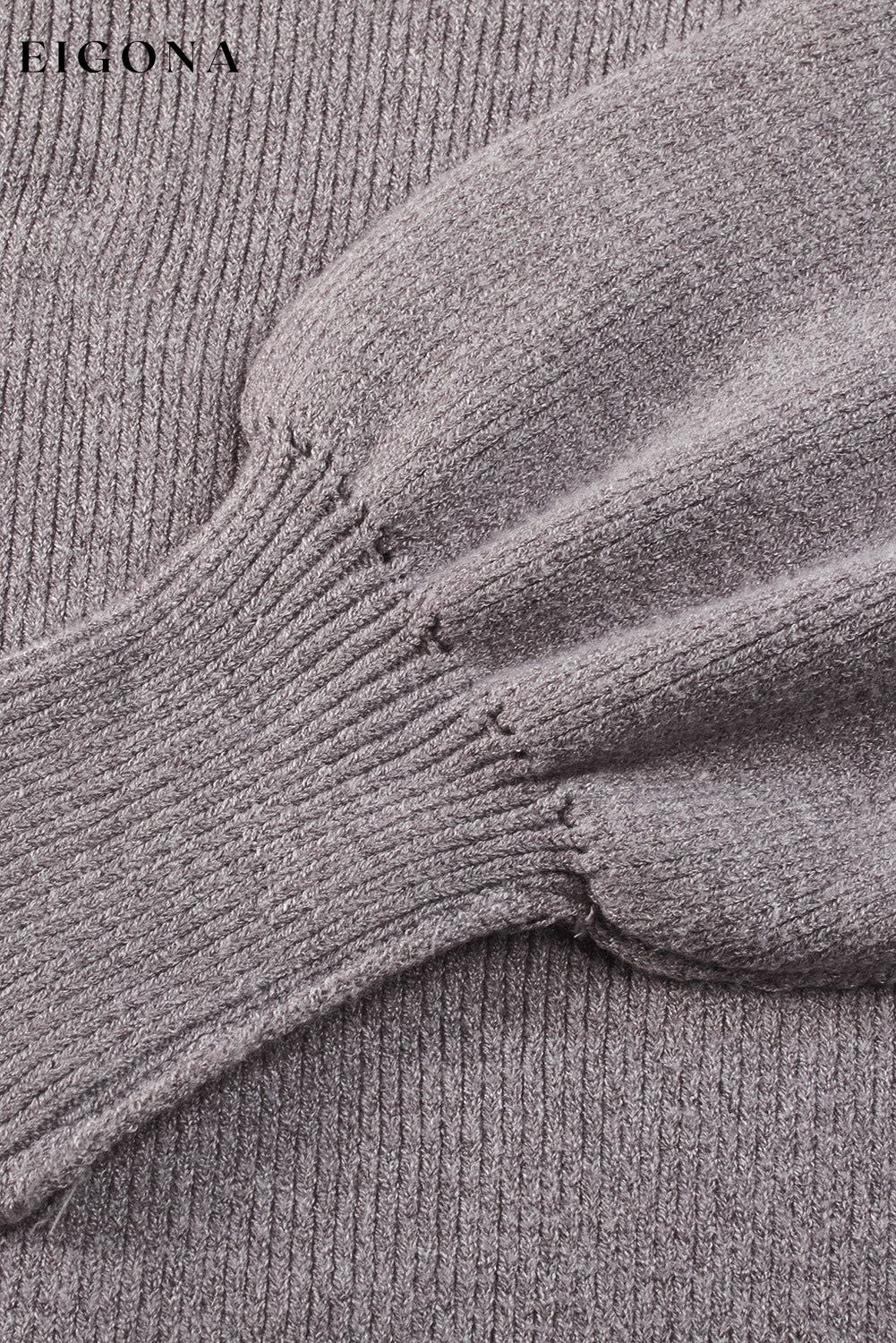 Gray Oversized Drop Shoulder Bubble Sleeve Pullover Sweater