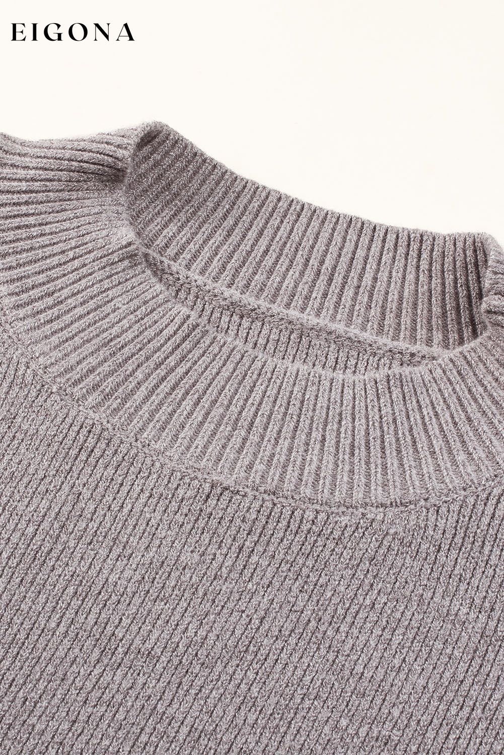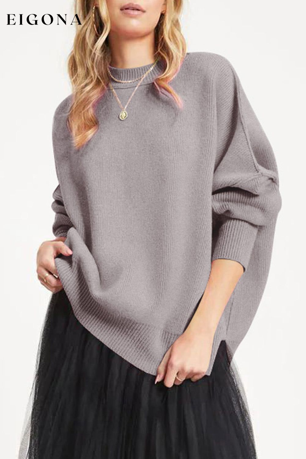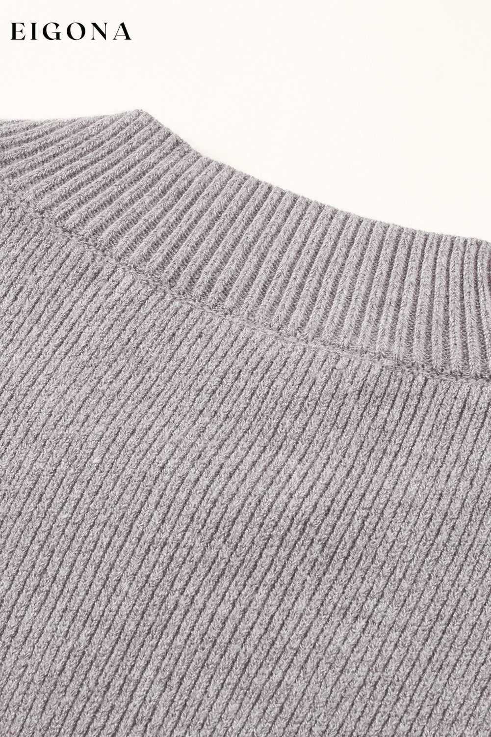 Gray Oversized Drop Shoulder Bubble Sleeve Pullover Sweater