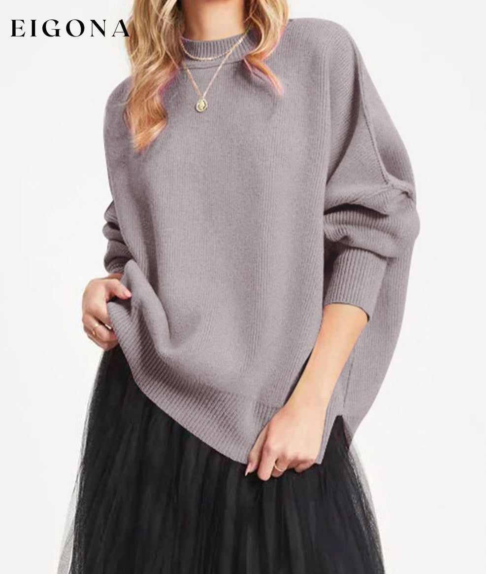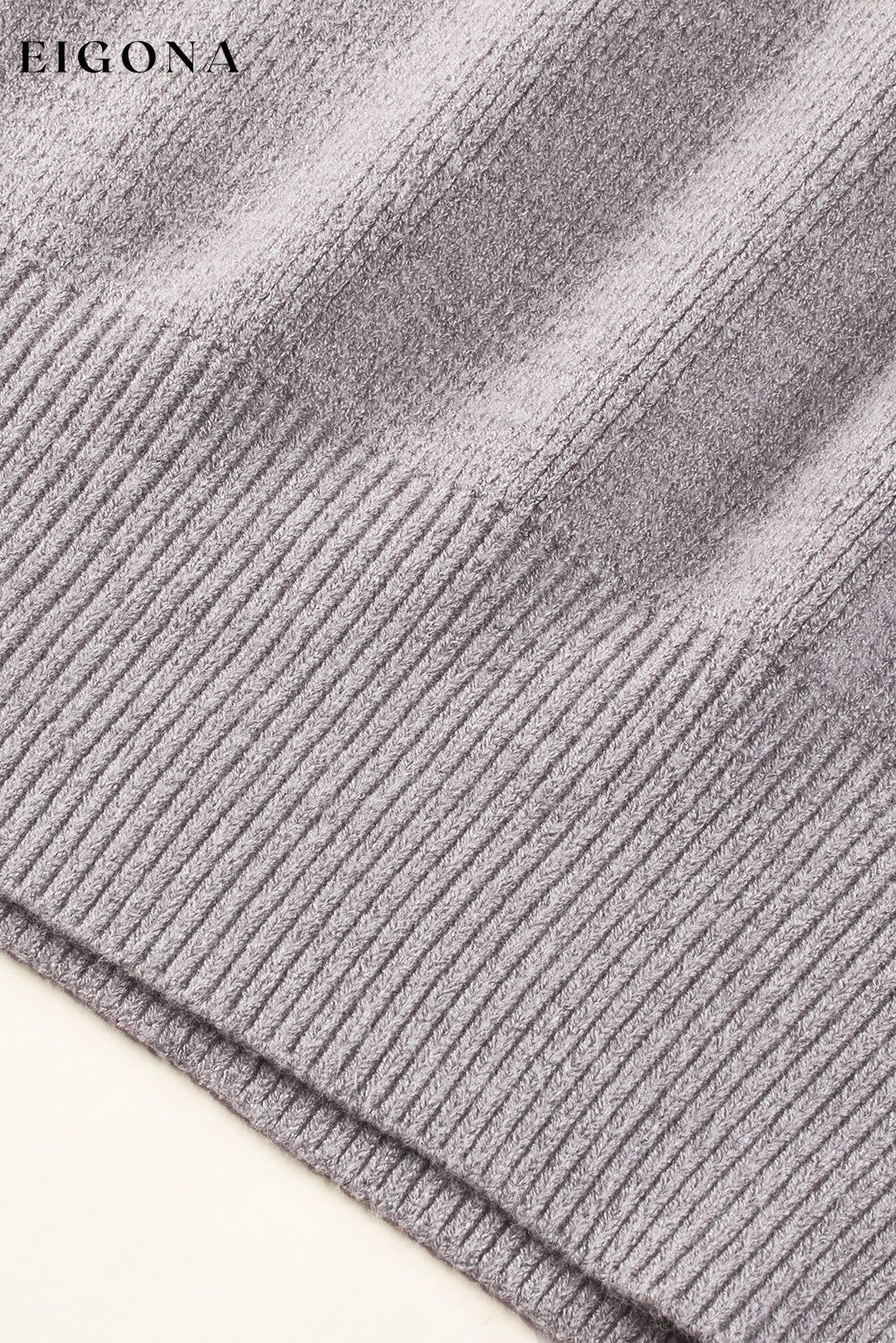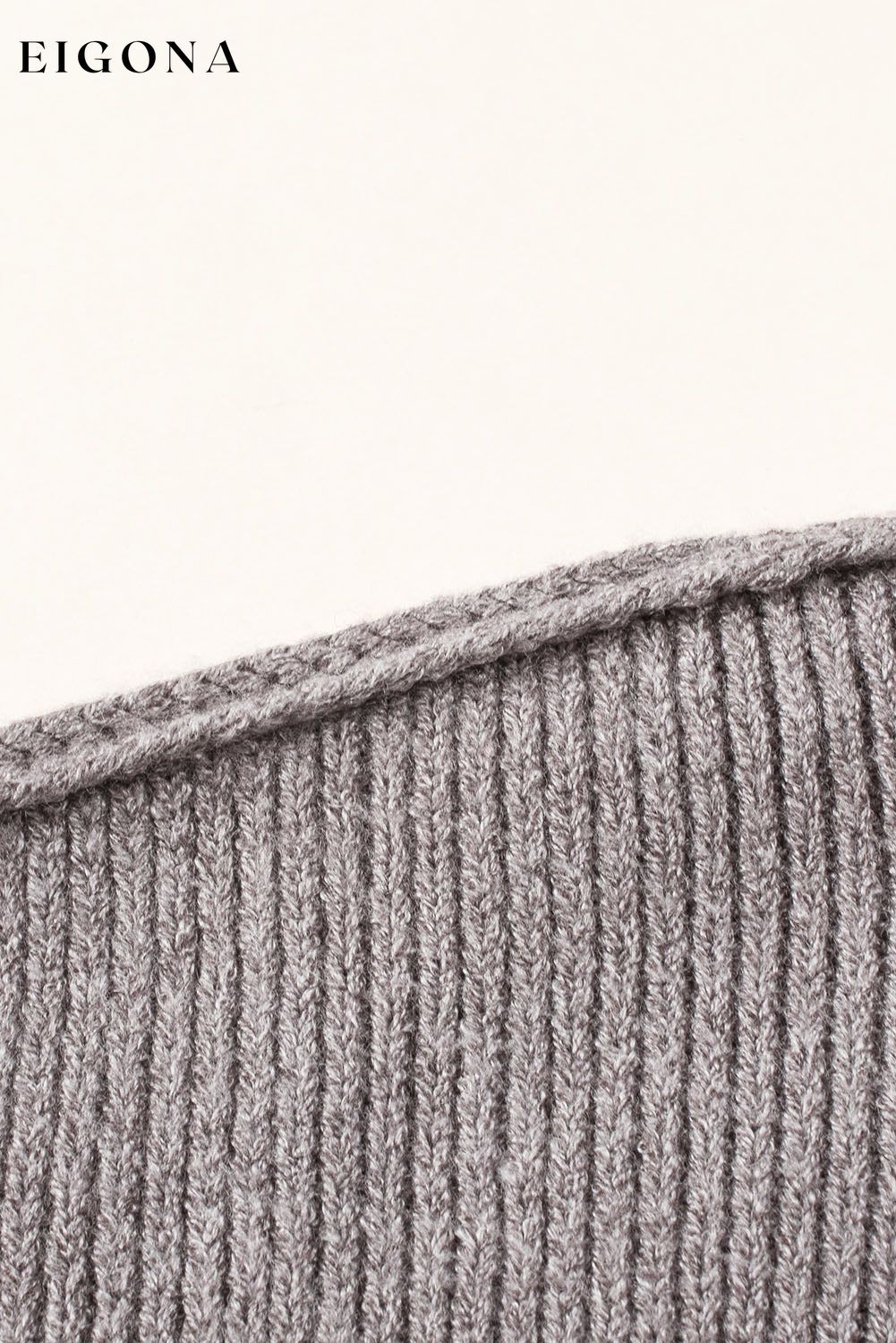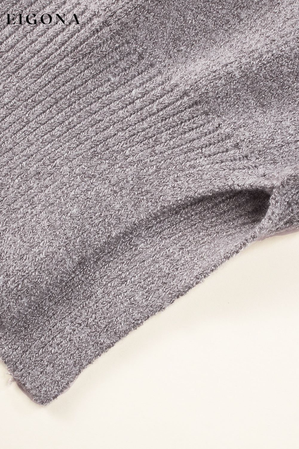 Gray Oversized Drop Shoulder Bubble Sleeve Pullover Sweater