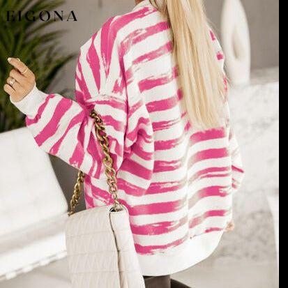 Heart Sequin Striped Dropped Shoulder Sweatshirt