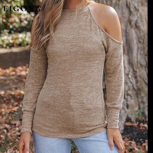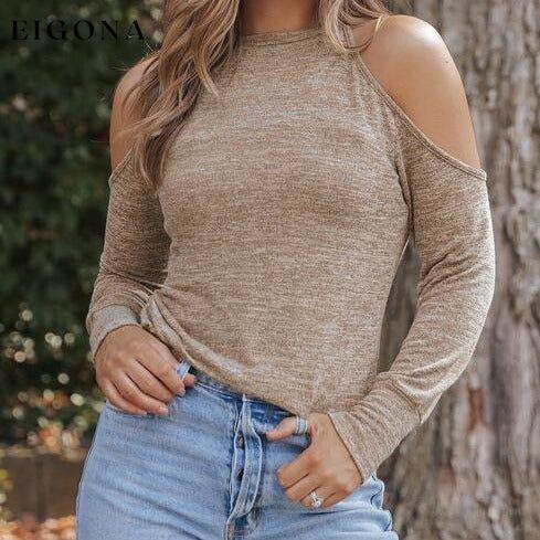 Heathered Round Neck Cold Shoulder T-Shirt