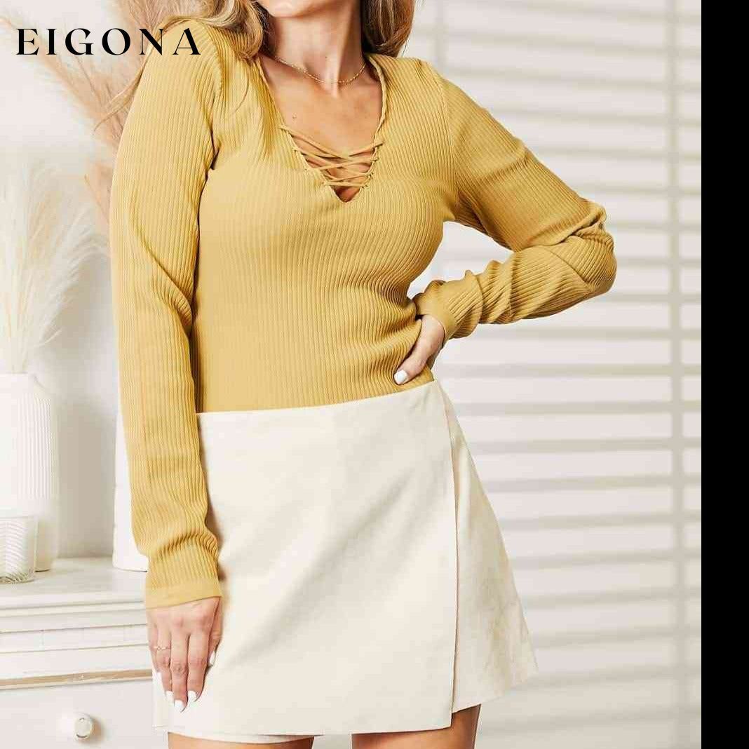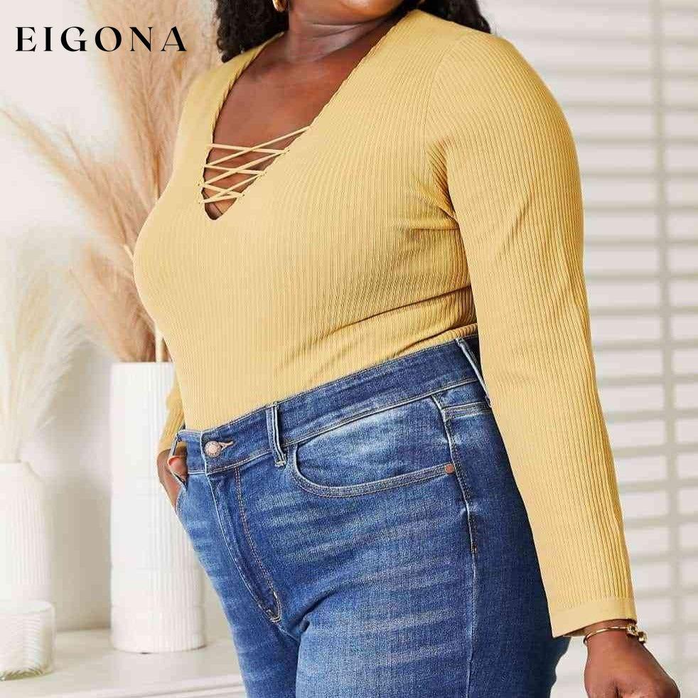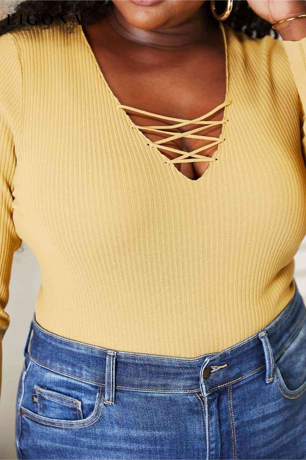 Crafted from soft and stretchy ribbed fabric, this bodysuit offers a comfortable and flattering fit. The standout feature is the alluring lace-up caged neck detail, adding a touch of edge and sophistication to any outfit. Whether you pair it with high-waisted jeans for a casual chic look or dress it up with a skirt for a night out, this bodysuit is sure to turn heads and become your go-to fashion essential. Embrace comfort, style, and confidence with this stunning bodysuit!