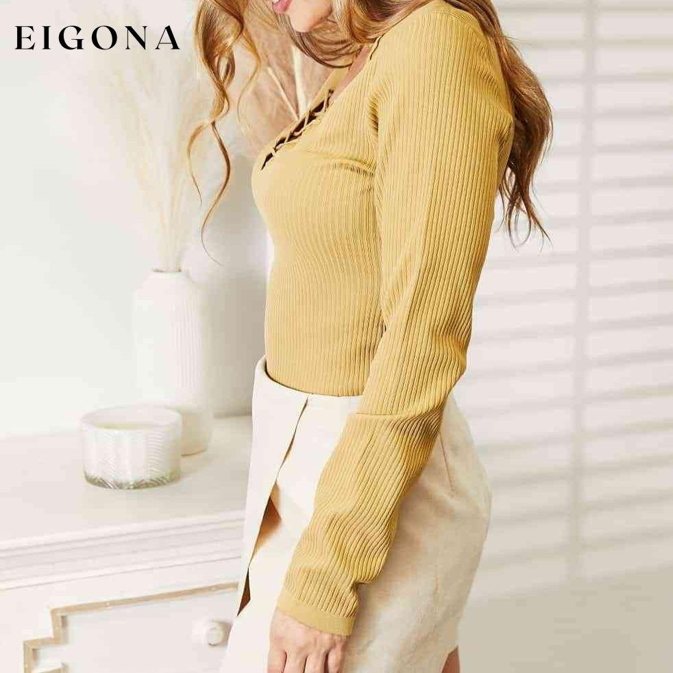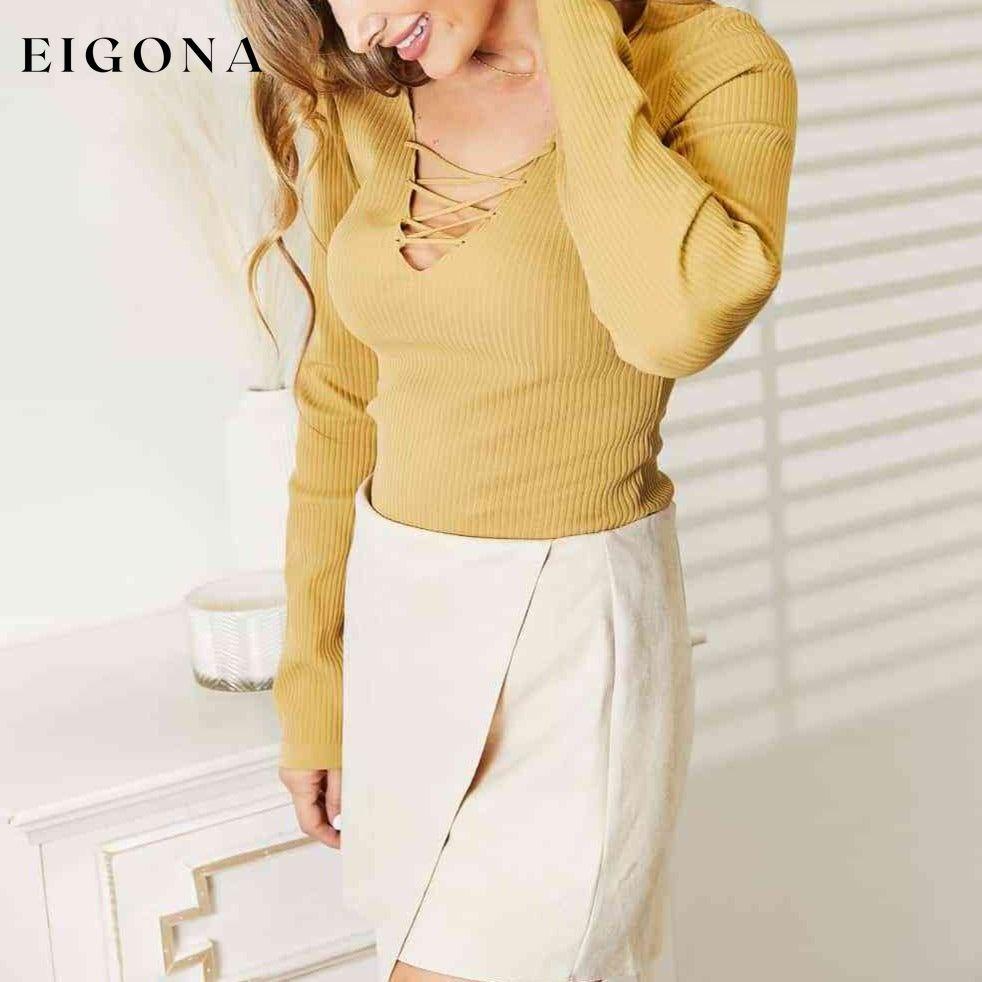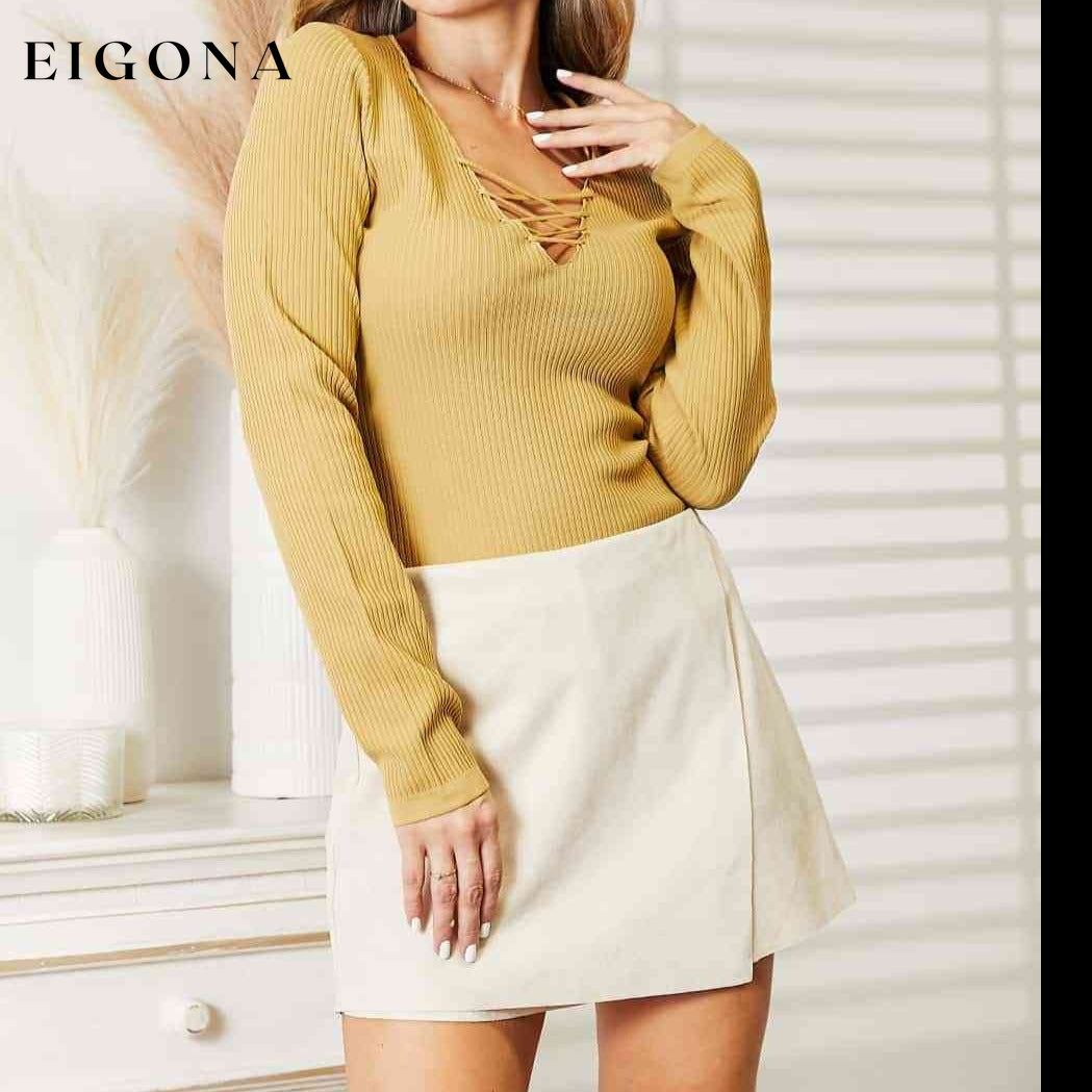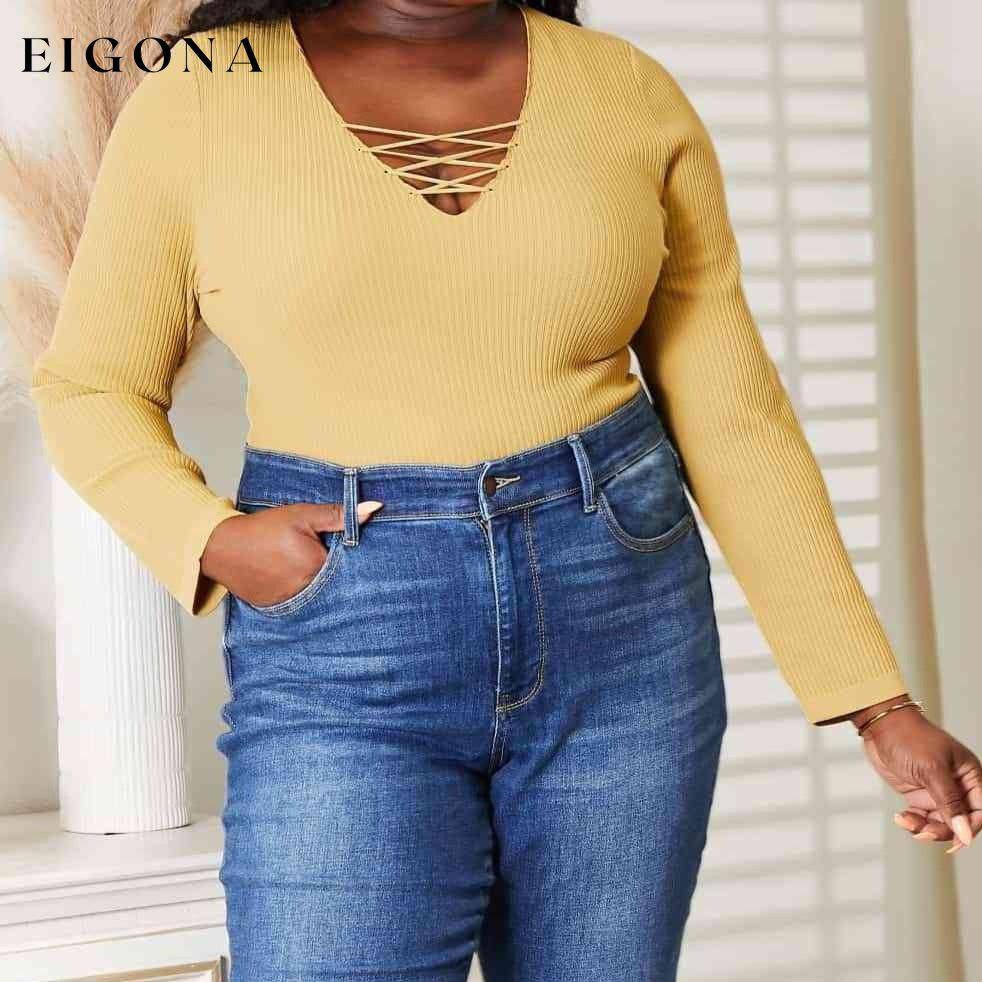 Crafted from soft and stretchy ribbed fabric, this bodysuit offers a comfortable and flattering fit. The standout feature is the alluring lace-up caged neck detail, adding a touch of edge and sophistication to any outfit. Whether you pair it with high-waisted jeans for a casual chic look or dress it up with a skirt for a night out, this bodysuit is sure to turn heads and become your go-to fashion essential. Embrace comfort, style, and confidence with this stunning bodysuit!