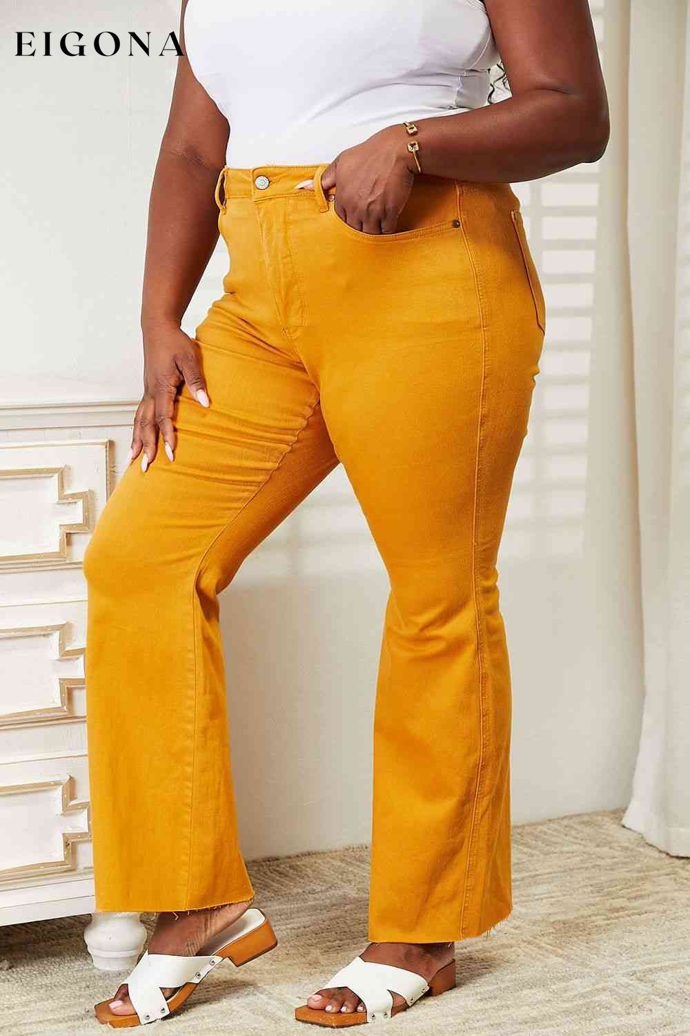 Full Size High Waist Tummy Control Garment Dyed Flare Jeans