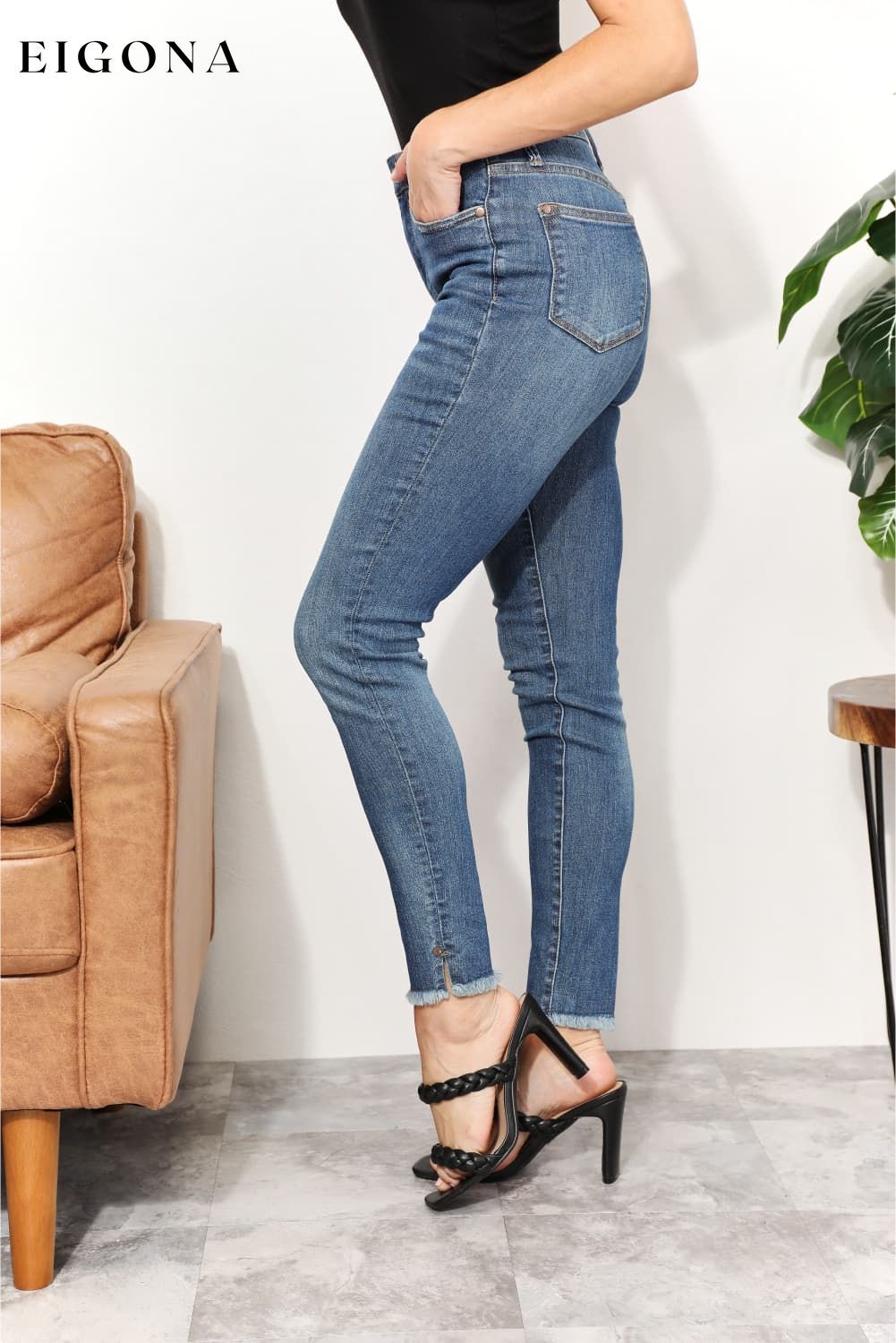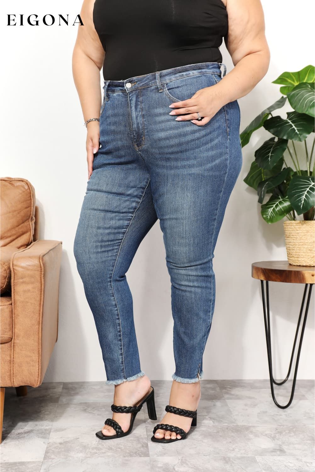 Full Size Tummy Control Side Slit & Fray Hem Skinny Jeans