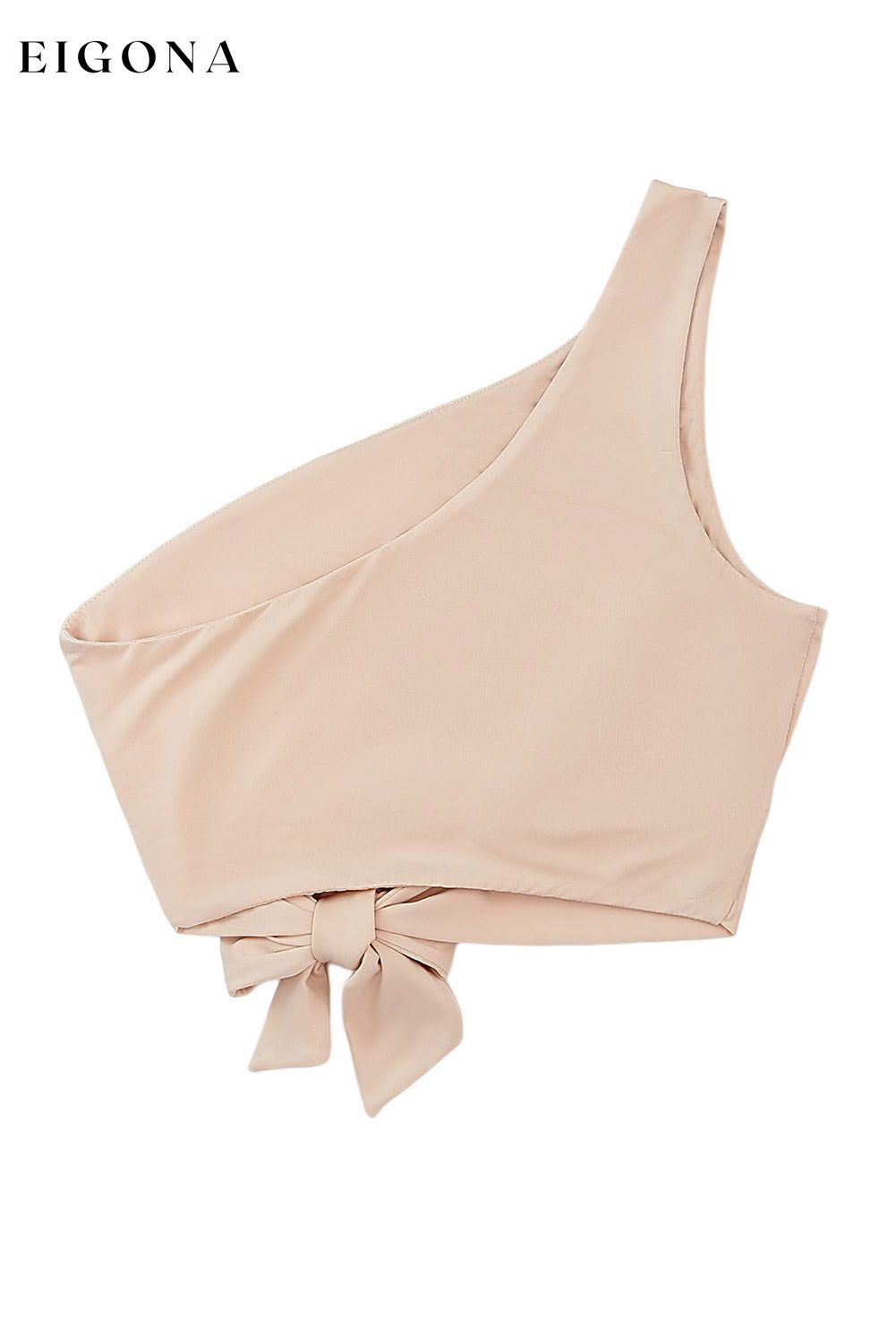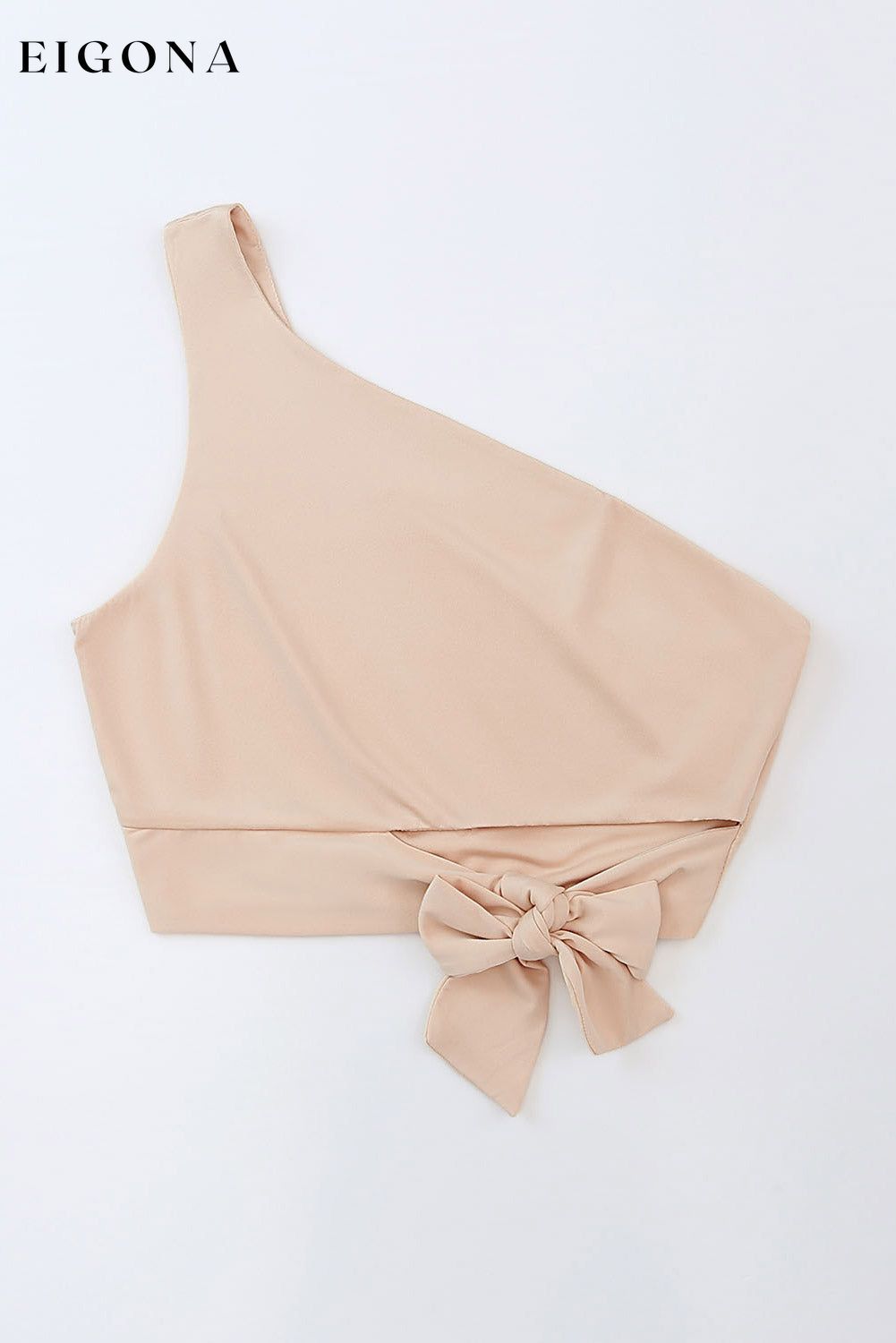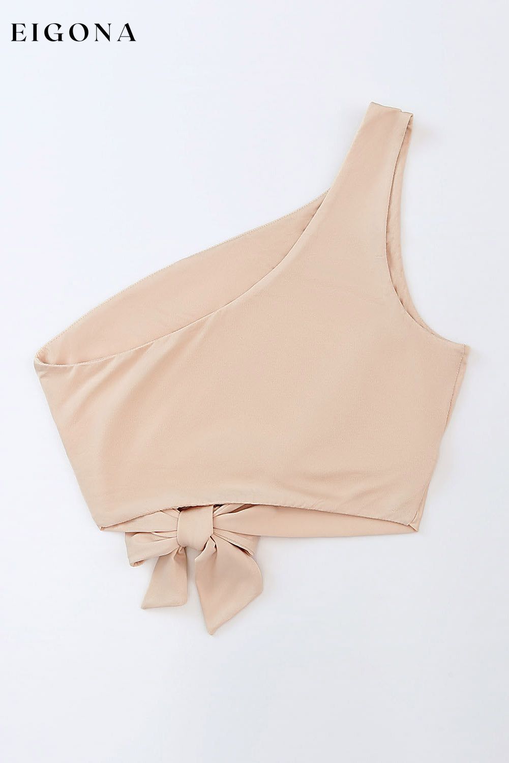Khaki One Shoulder Side Tie Sleeveless Crop Top