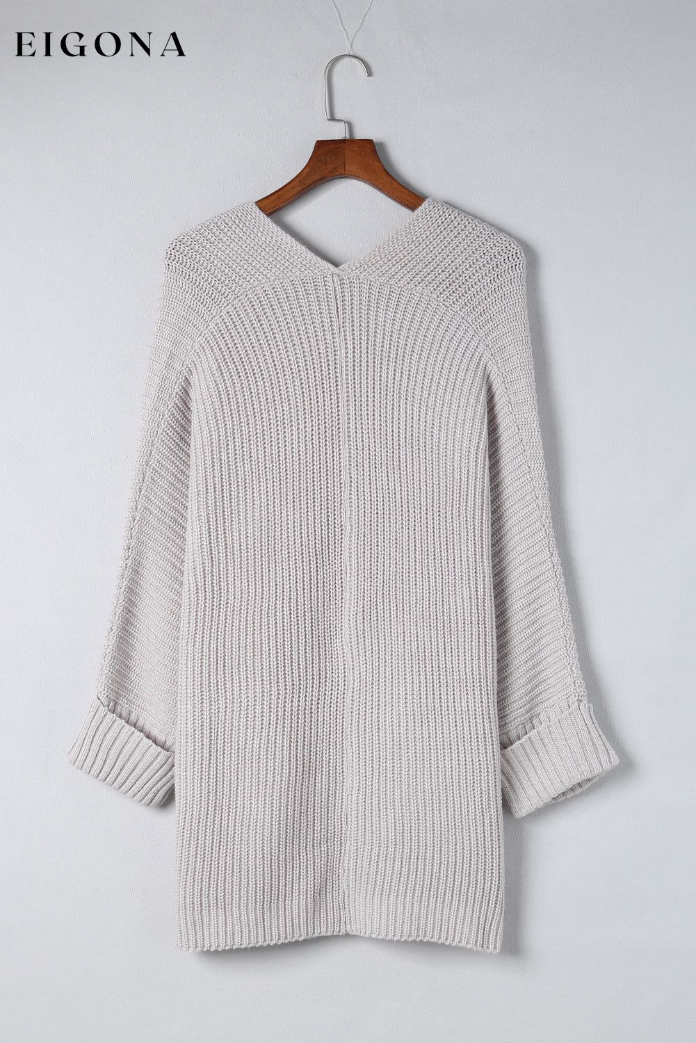 Khaki Oversized Fold Over Sleeve Sweater Cardigan