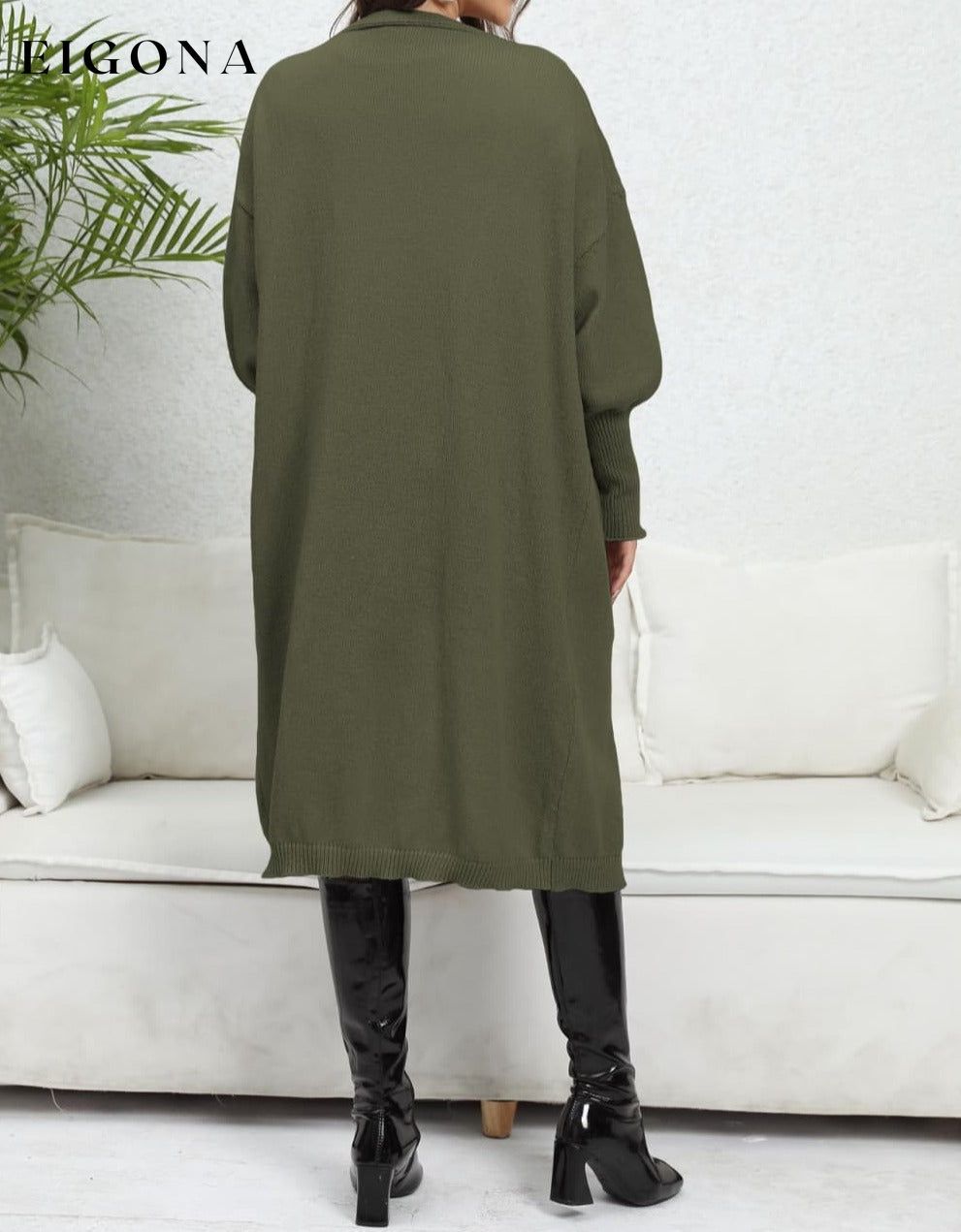 Lantern Sleeve Open Front Pocketed Cardigan with hearts