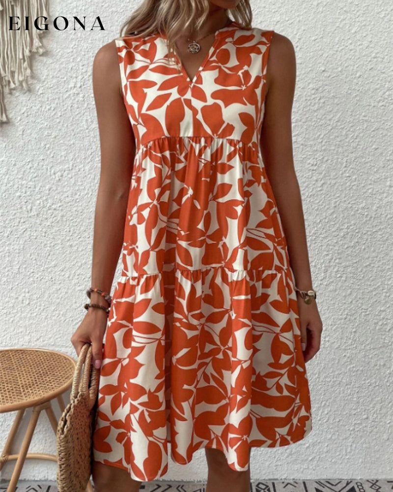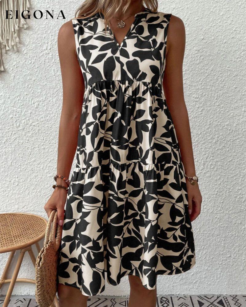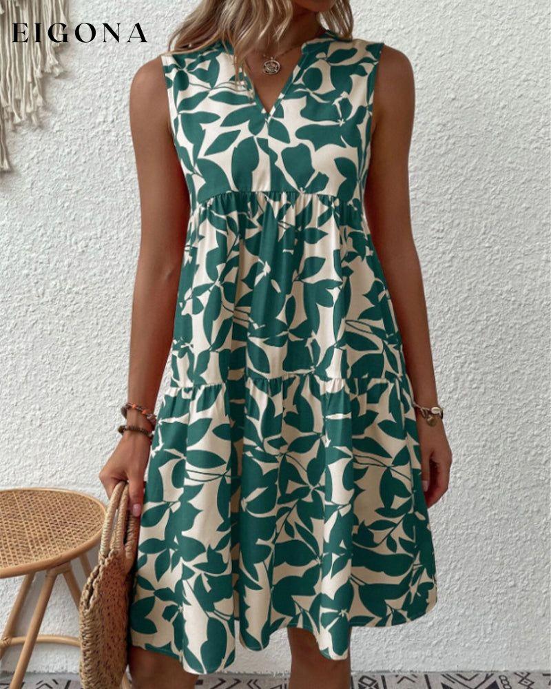 Leaves Print Sleeveless Dress