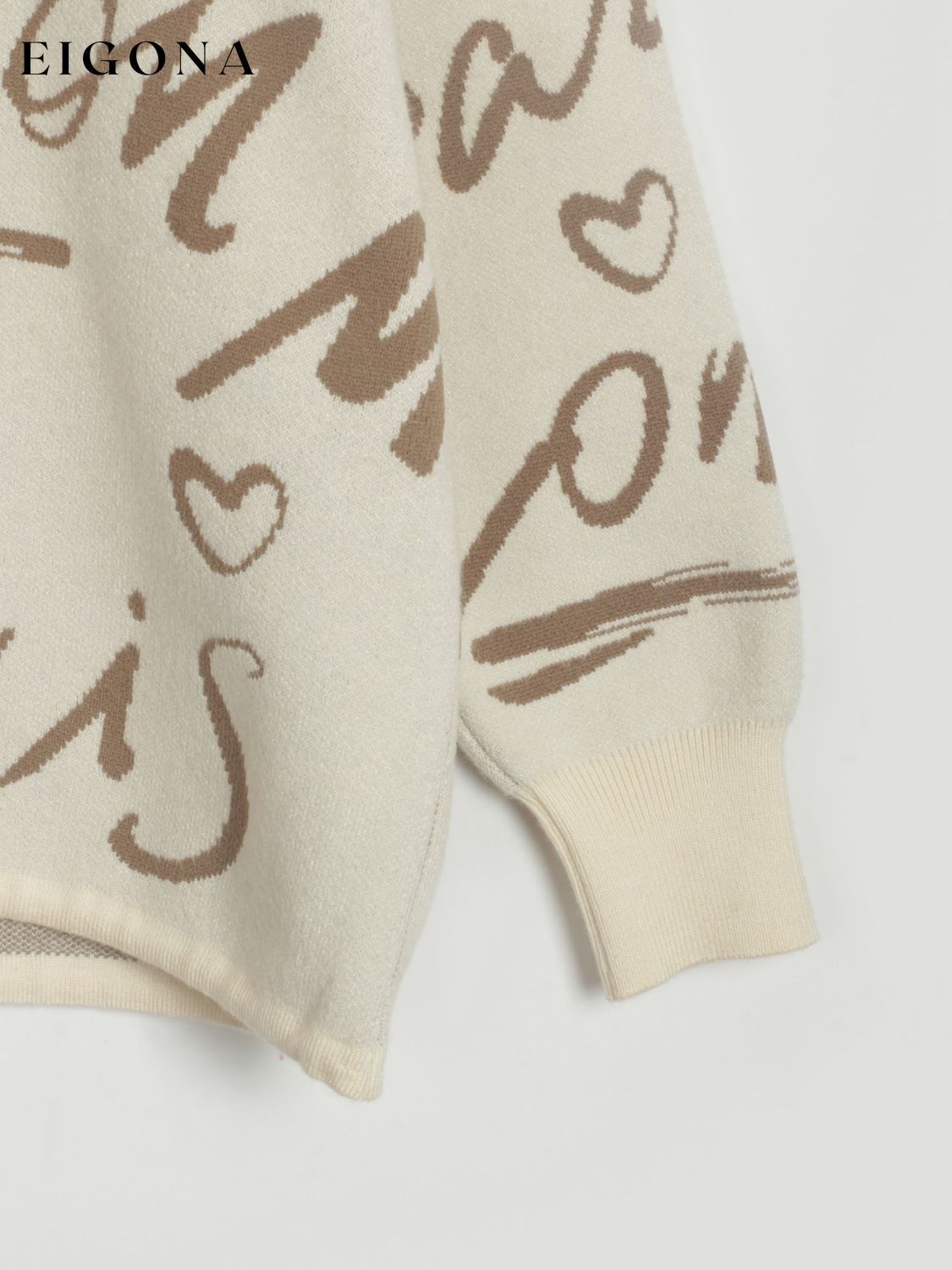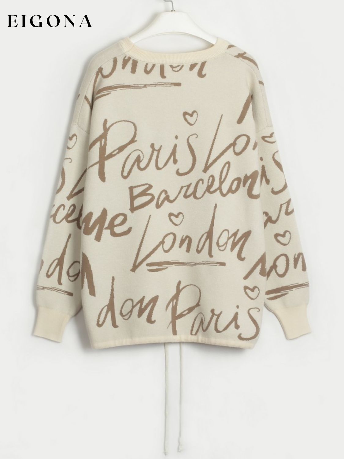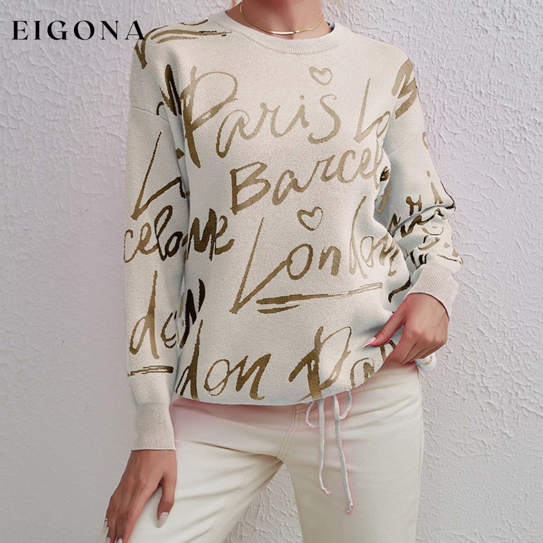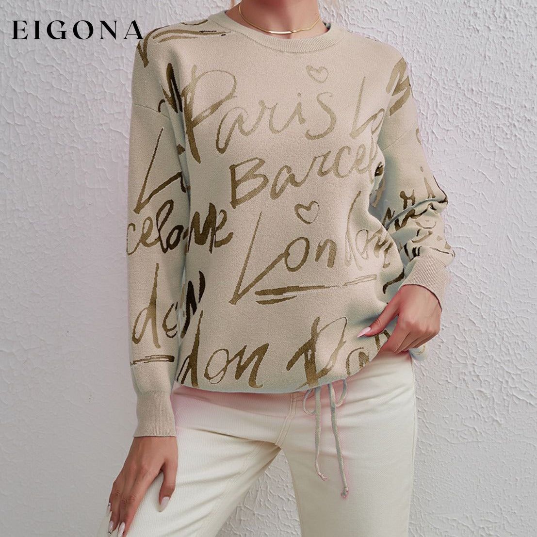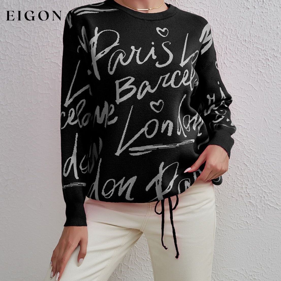 Letter Round Neck Drawstring Sweater