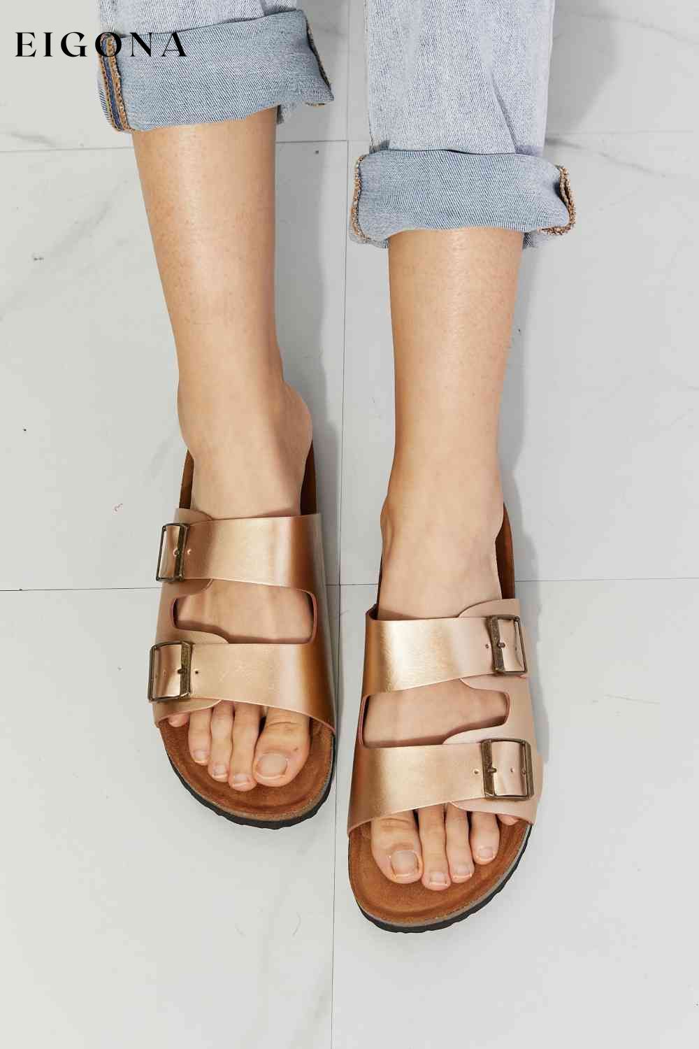 These double-banded slide sandals give a luxe look with their faux leather upper and cork sole. Their comfy design is perfect for wearing for almost any summer adventure.