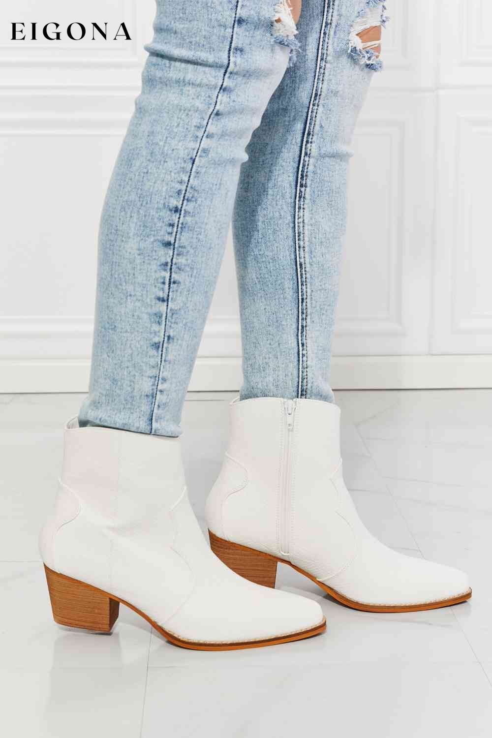 Town Faux Leather Western Ankle Boots in White