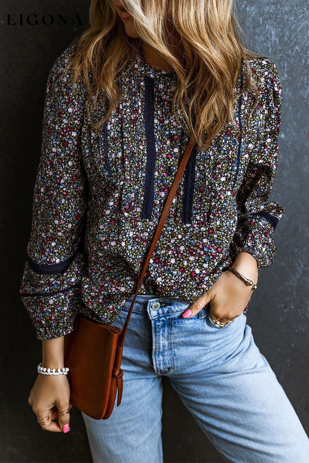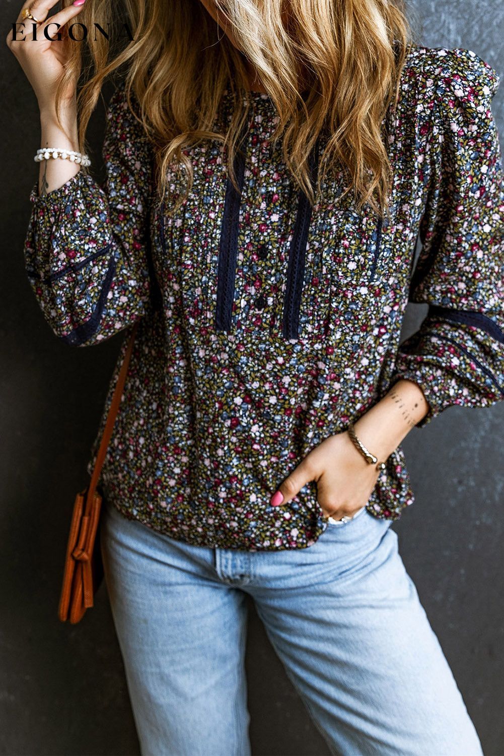 - It has a round neck with buttoned details, puff sleeves, and a loose fit