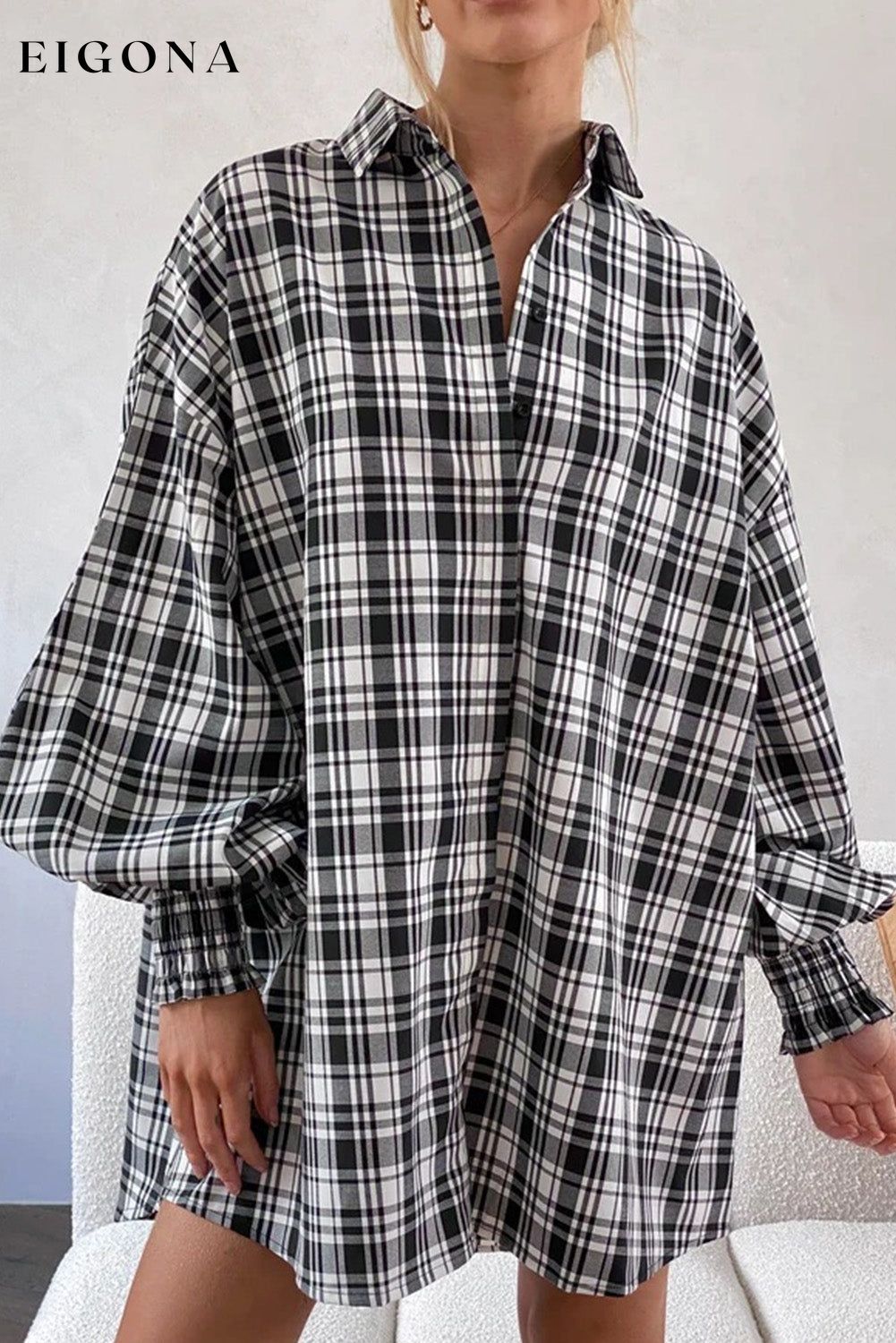 Multicolour Bishop Sleeve, Long Sleeve Plaid Oversized Button Down Shirt