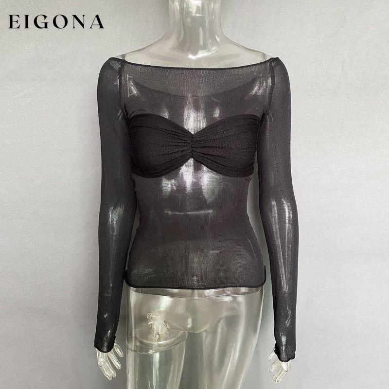 New Fashion Women's Clothing Lightweight See-Through Neck T-Shirt Top