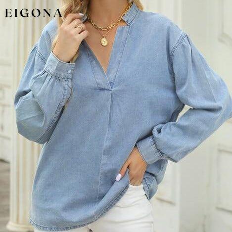 Notched Neck Denim Top