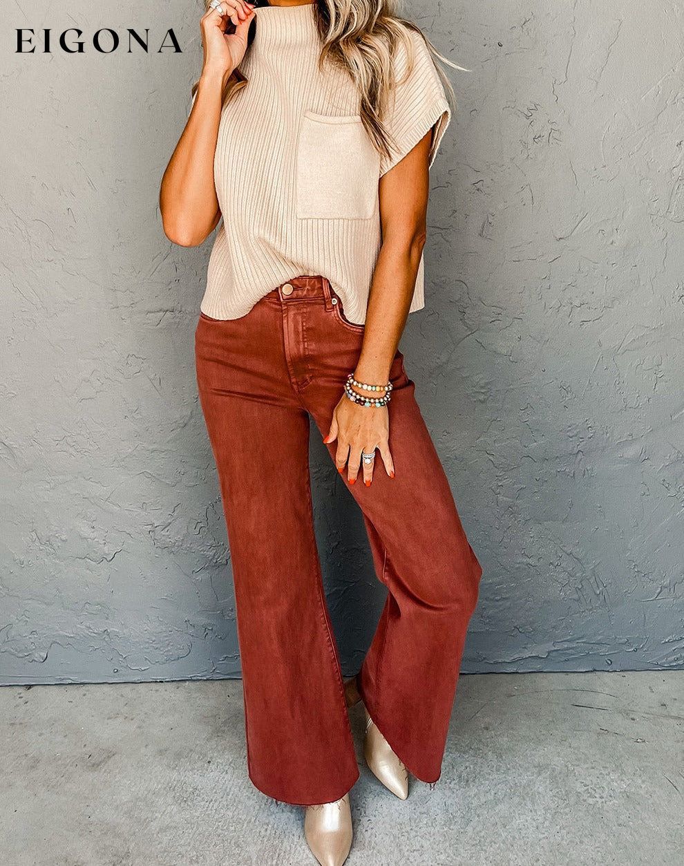 - Ribbed knit texture for a cozy and stylish look