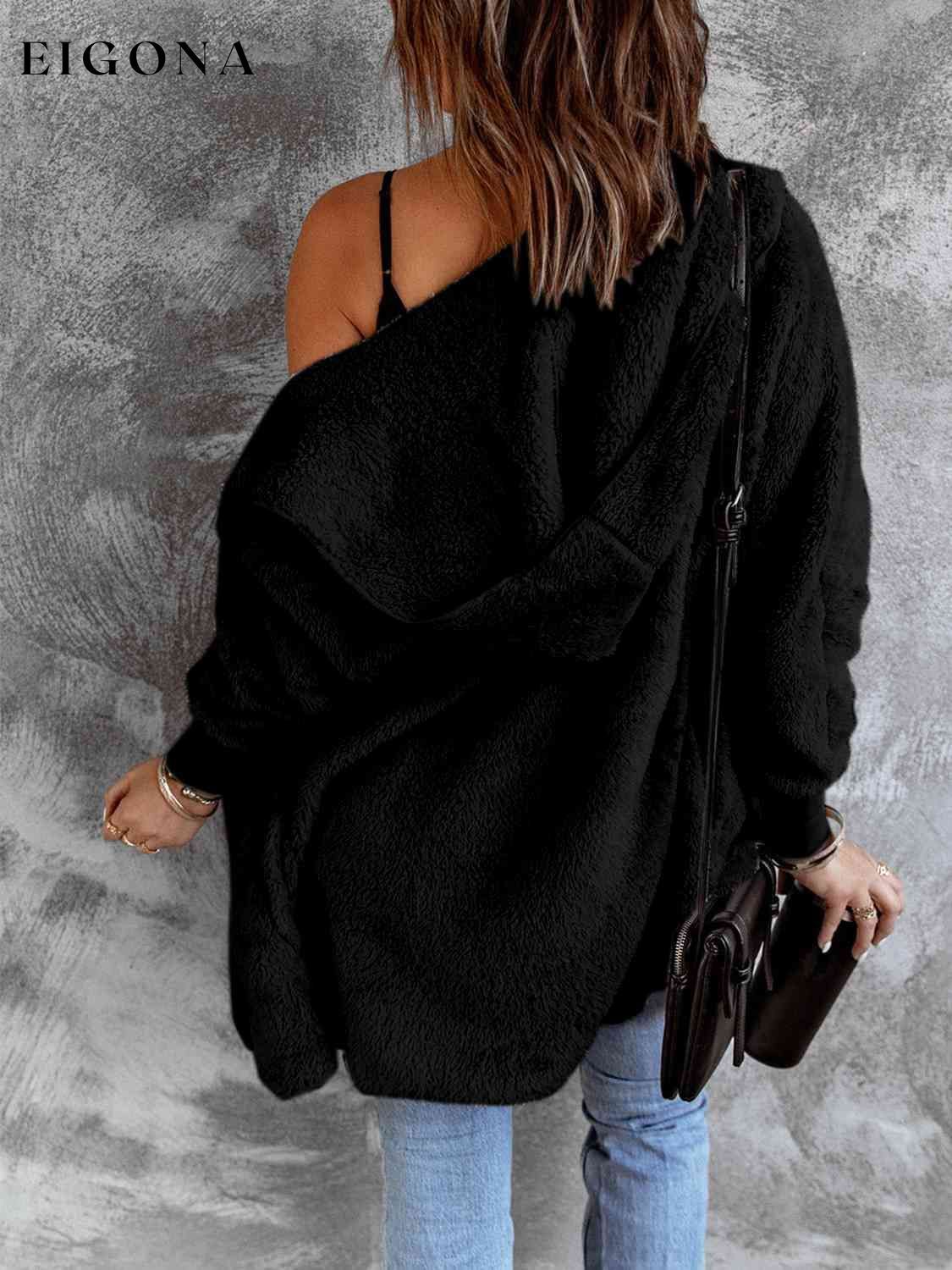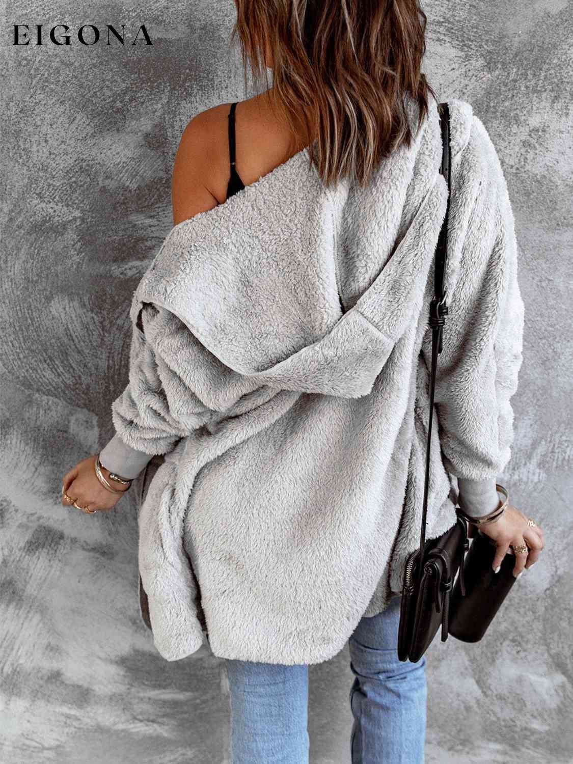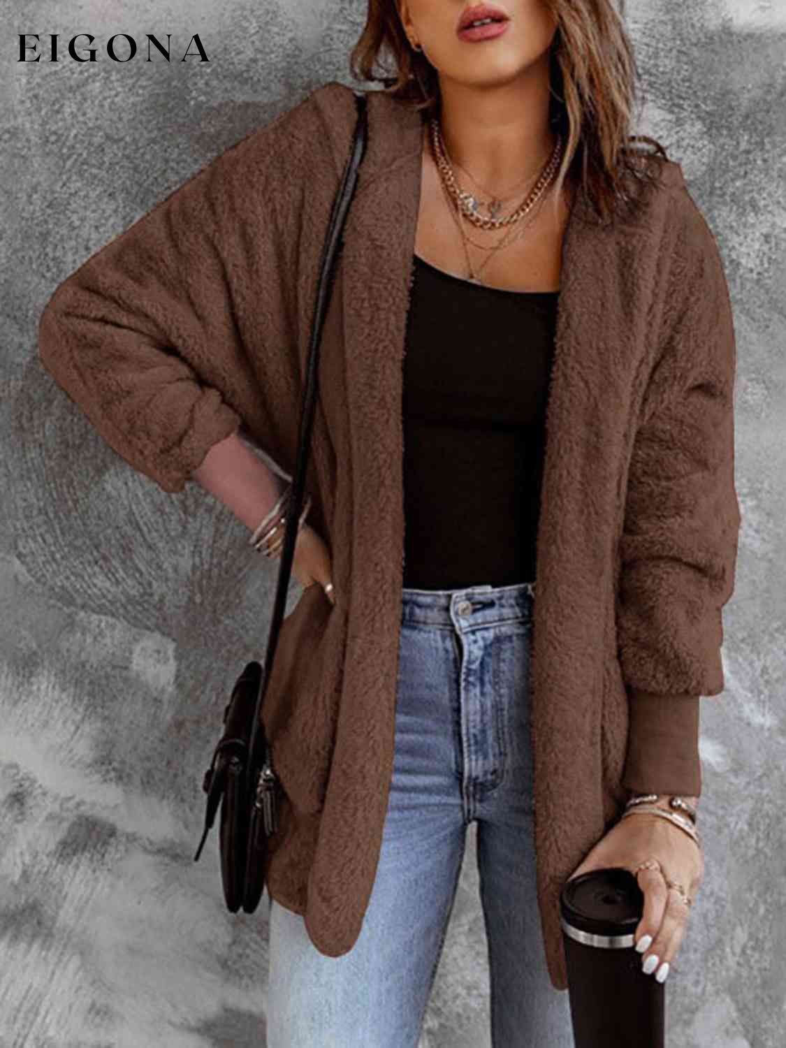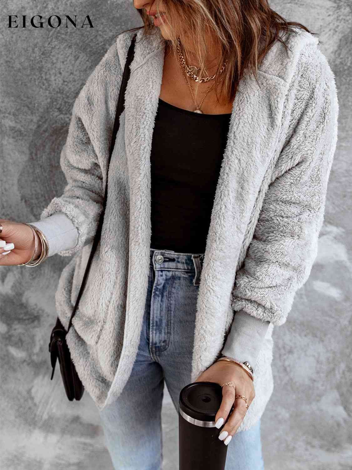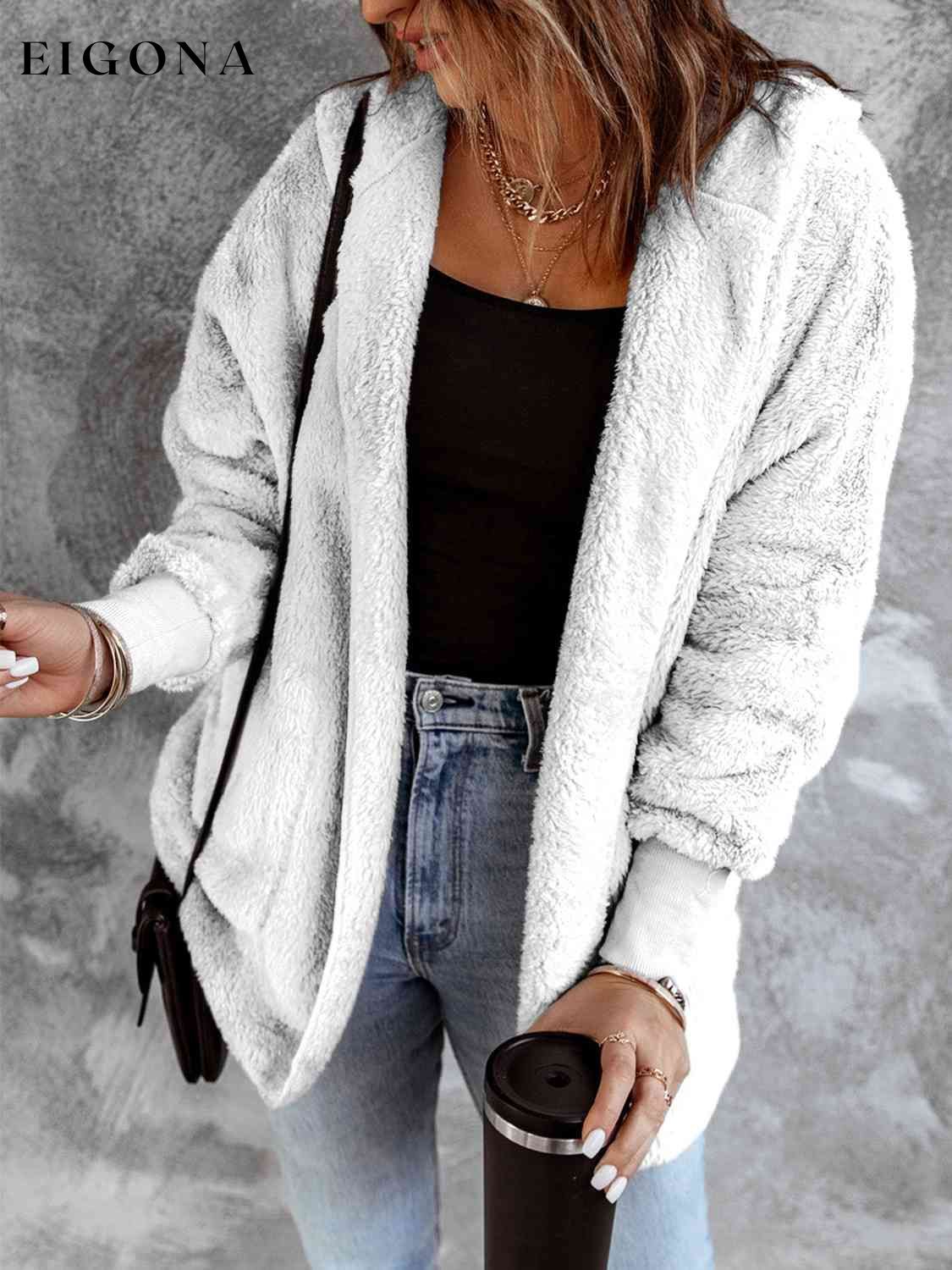 Open Front Hooded Faux Fur Outwear with Pockets