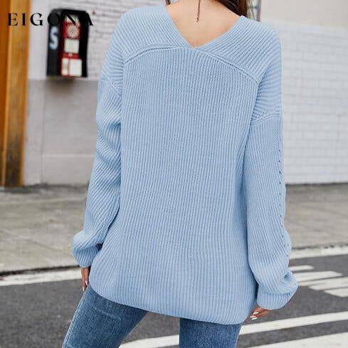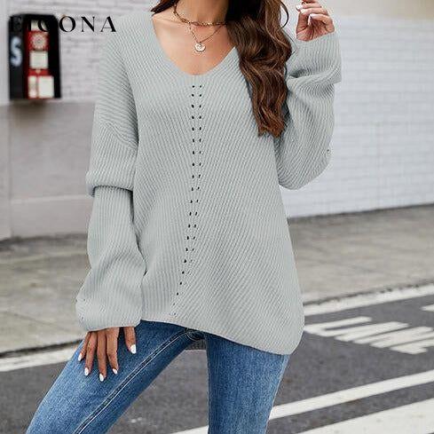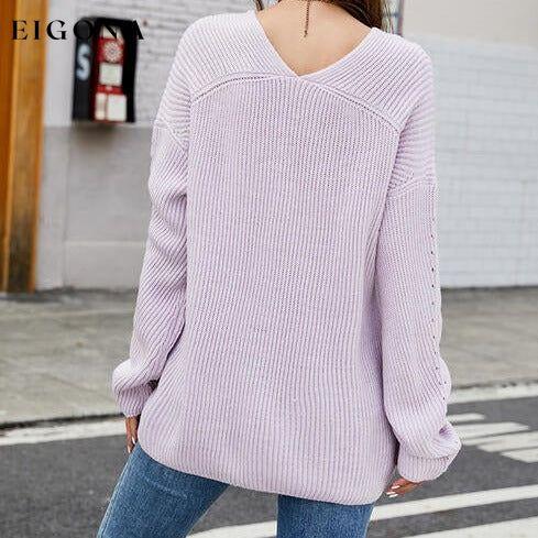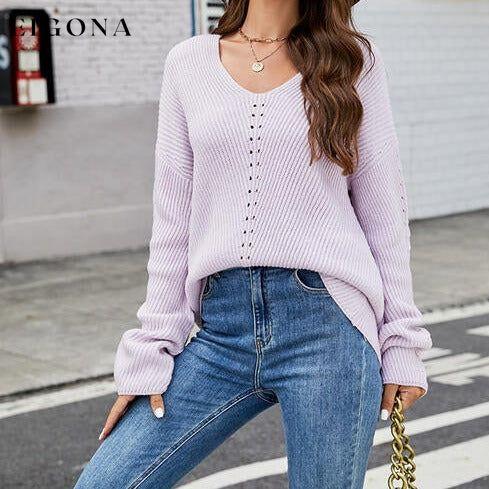 Openwork Dropped Shoulder Long Sleeve Sweater