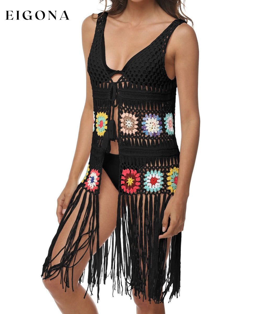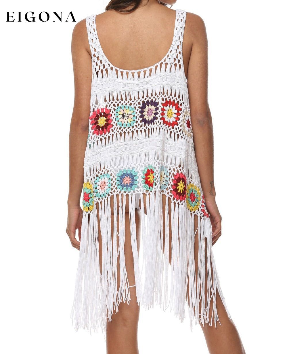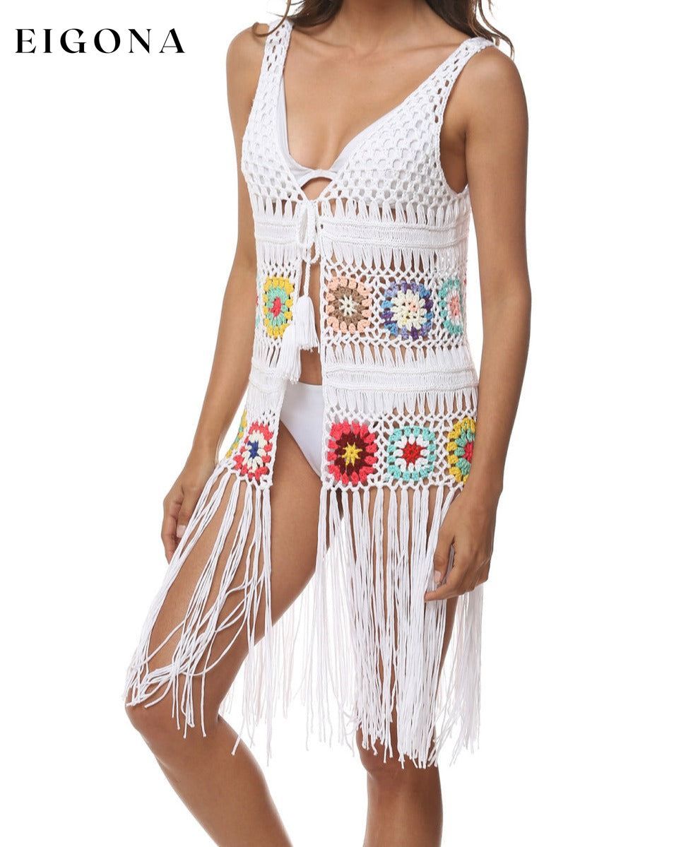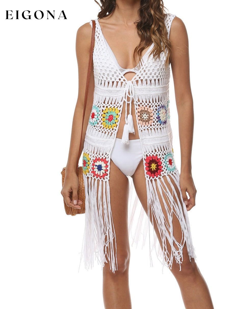 Openwork Fringe Detail Embroidery Sleeveless Cover-Up