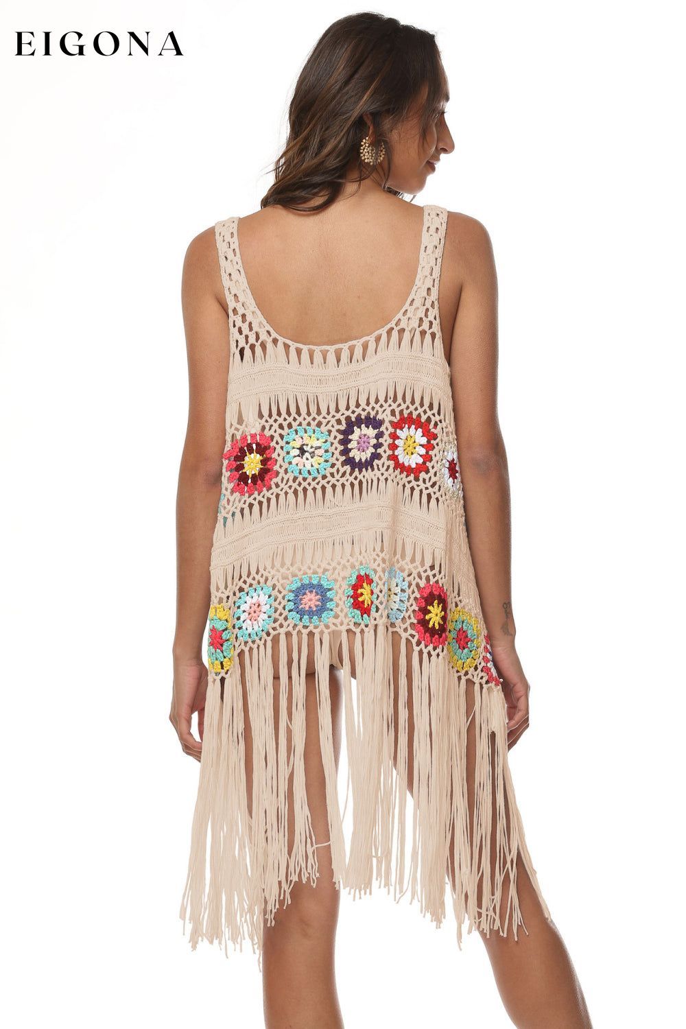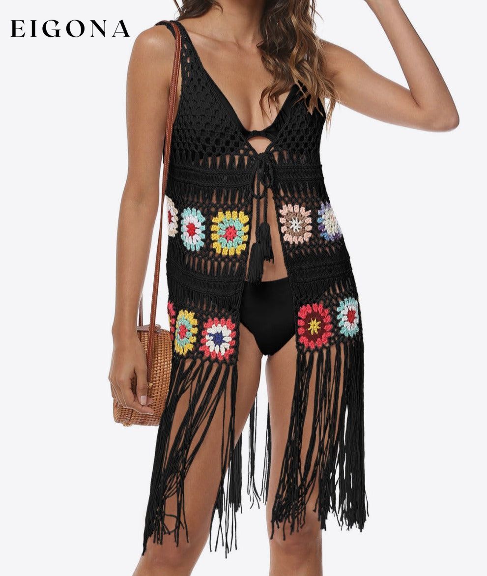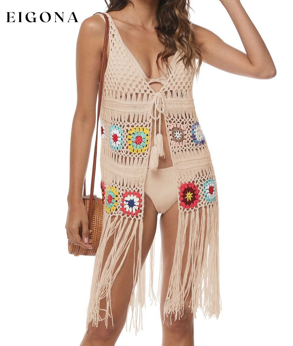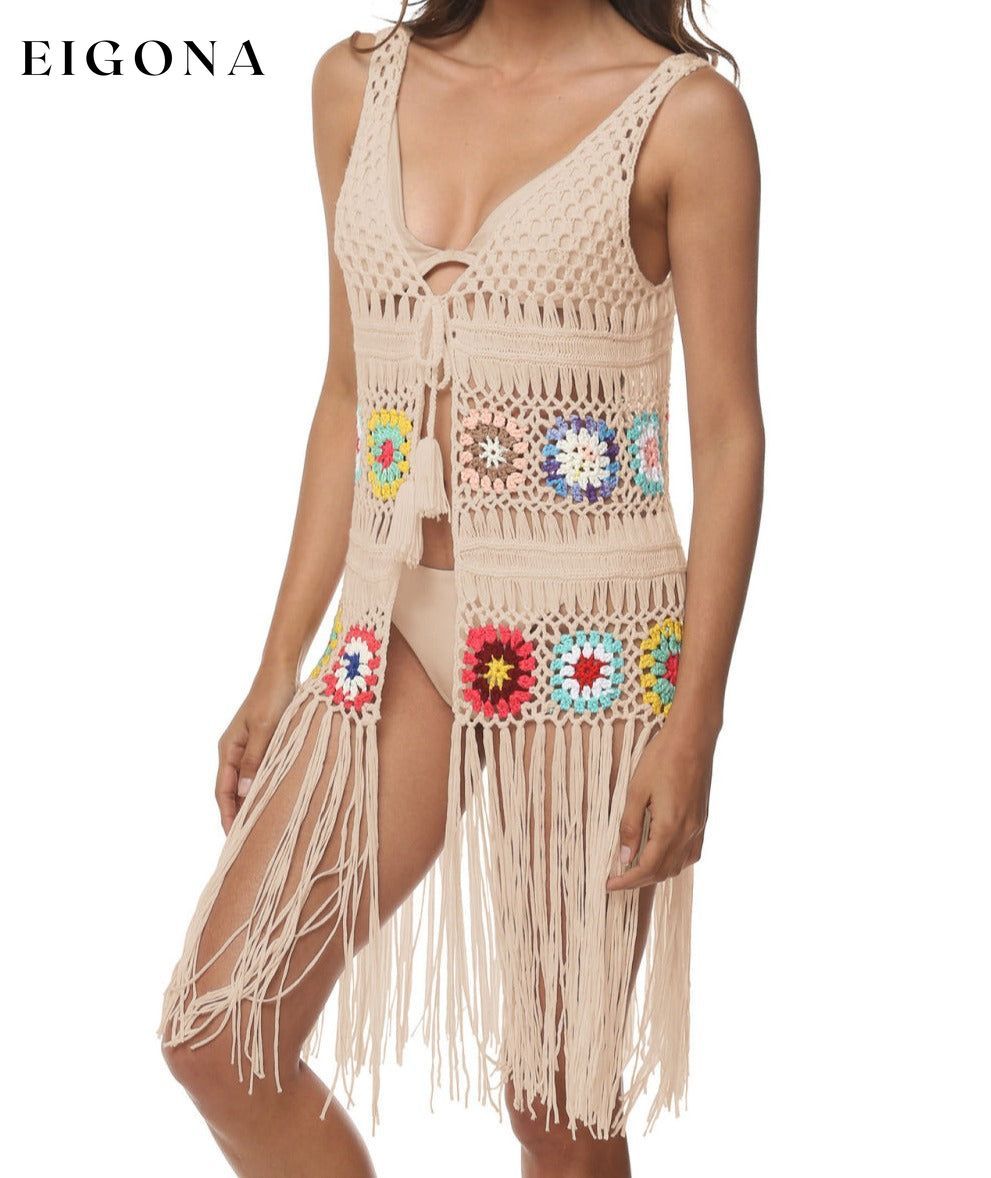 Openwork Fringe Detail Embroidery Sleeveless Cover-Up