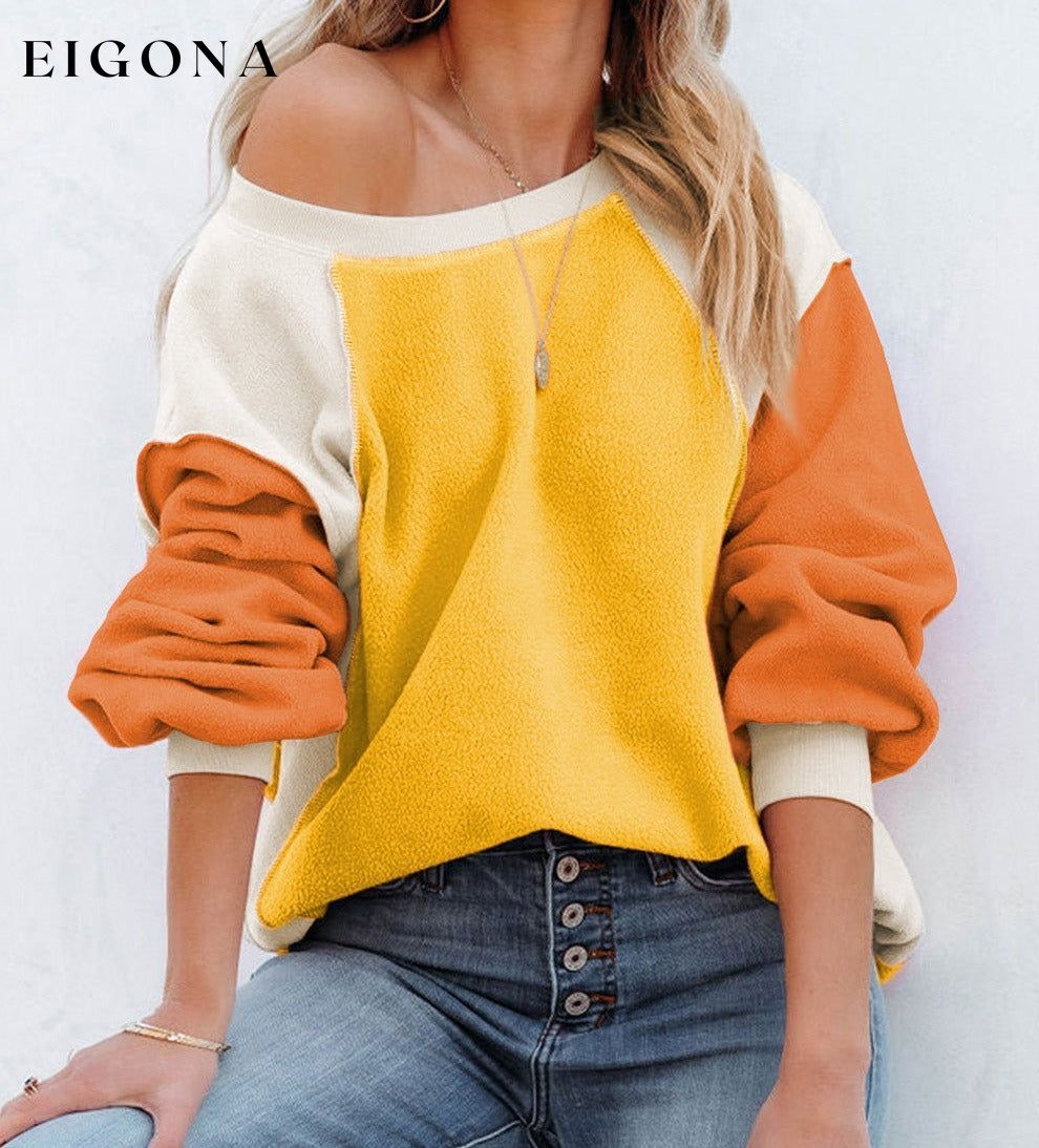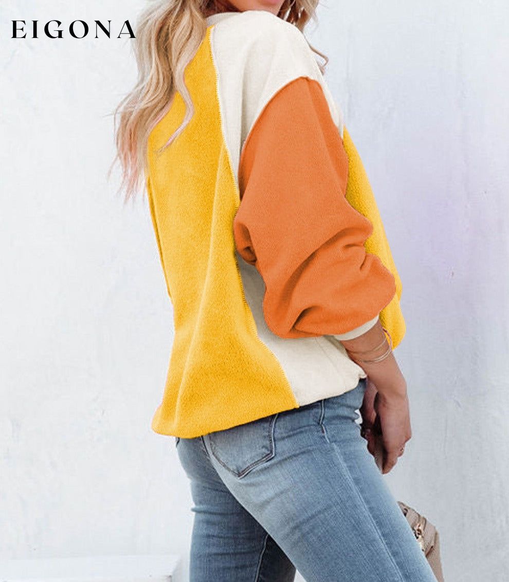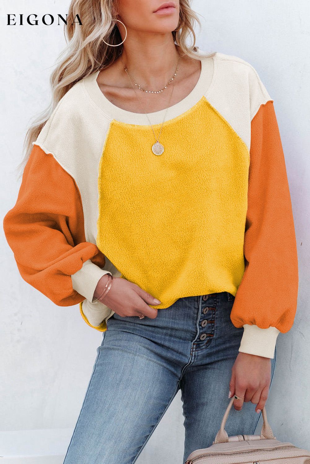 Orange Colorblock Long Sleeve Pullover Fleece Sweatshirt