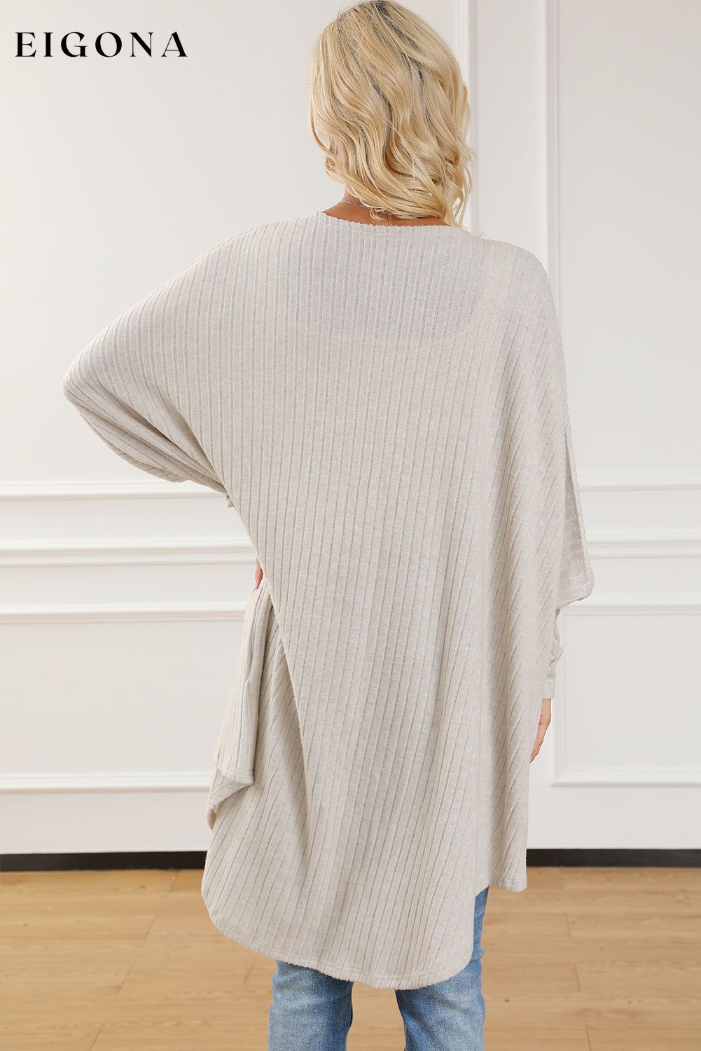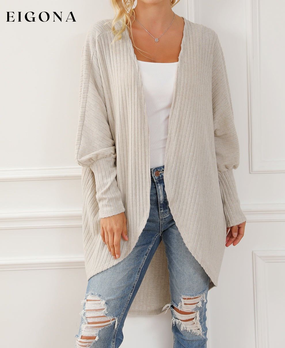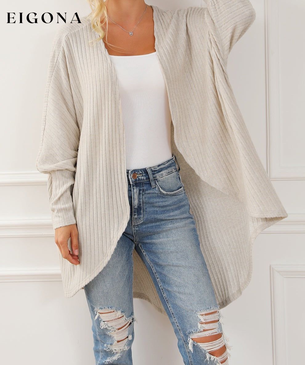 Parchment Bat Sleeve Wide Ribbed Knit Cardigan