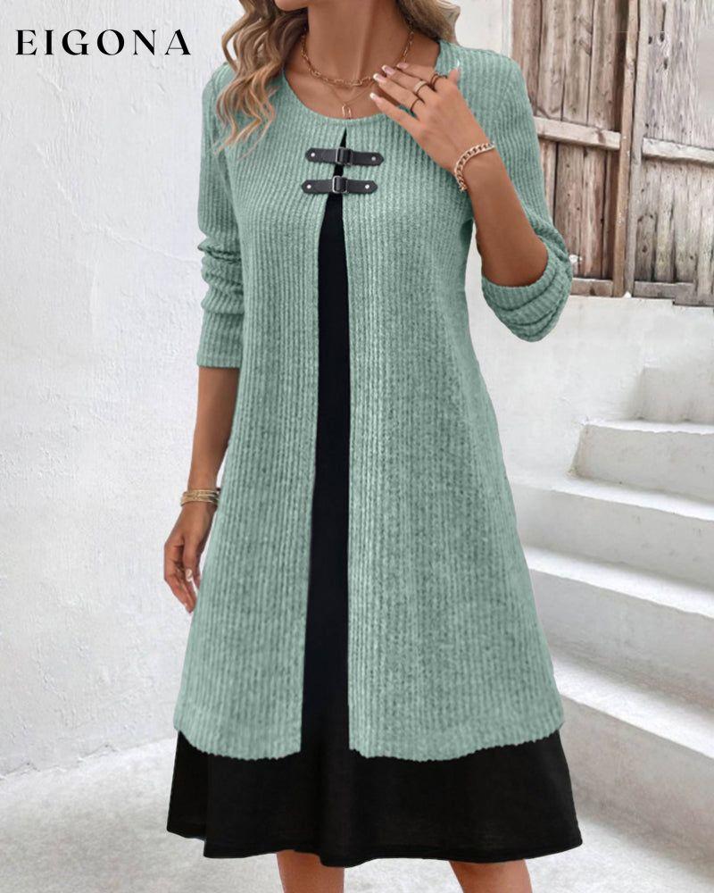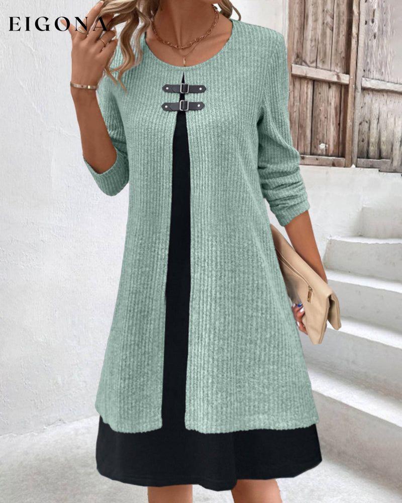 Patchwork rib long sleeve dress