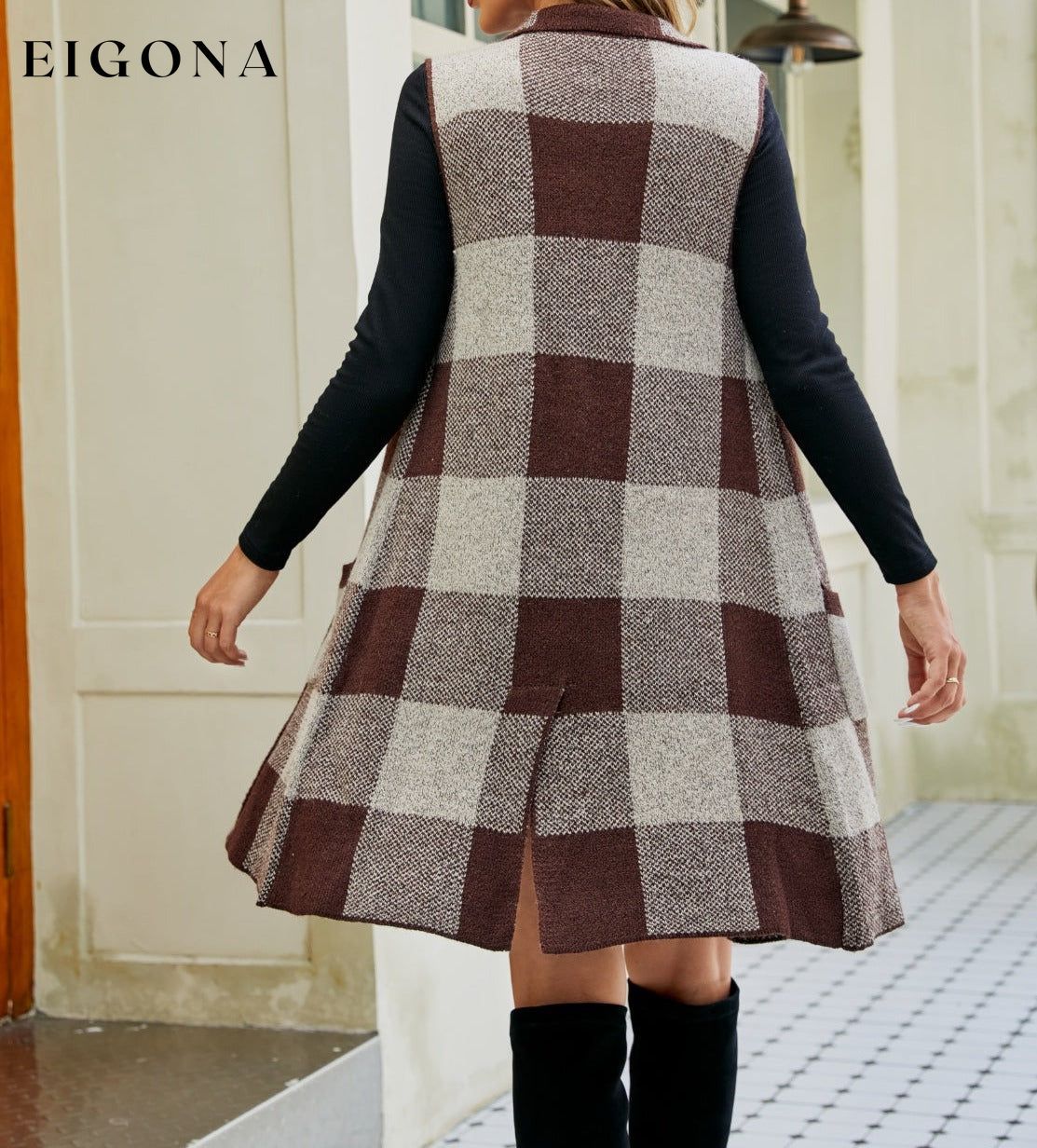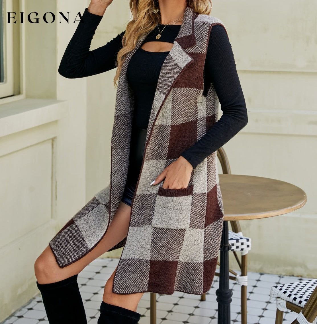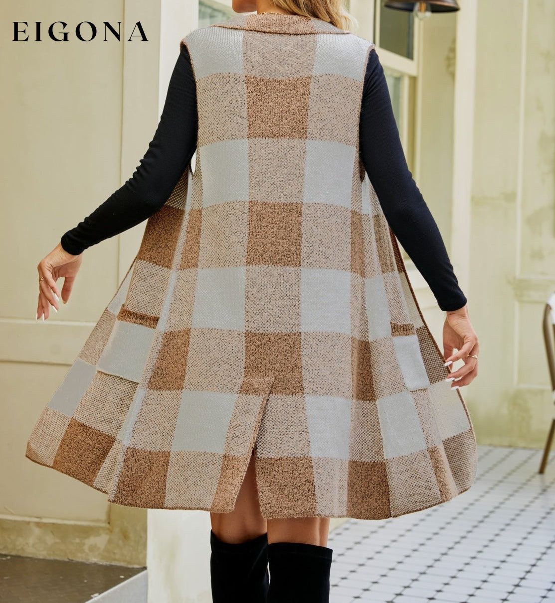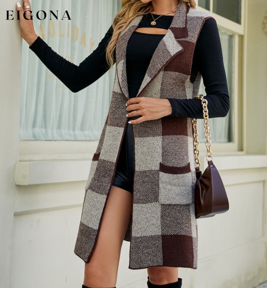 Plaid Lapel Collar Sleeveless Long Cardigan