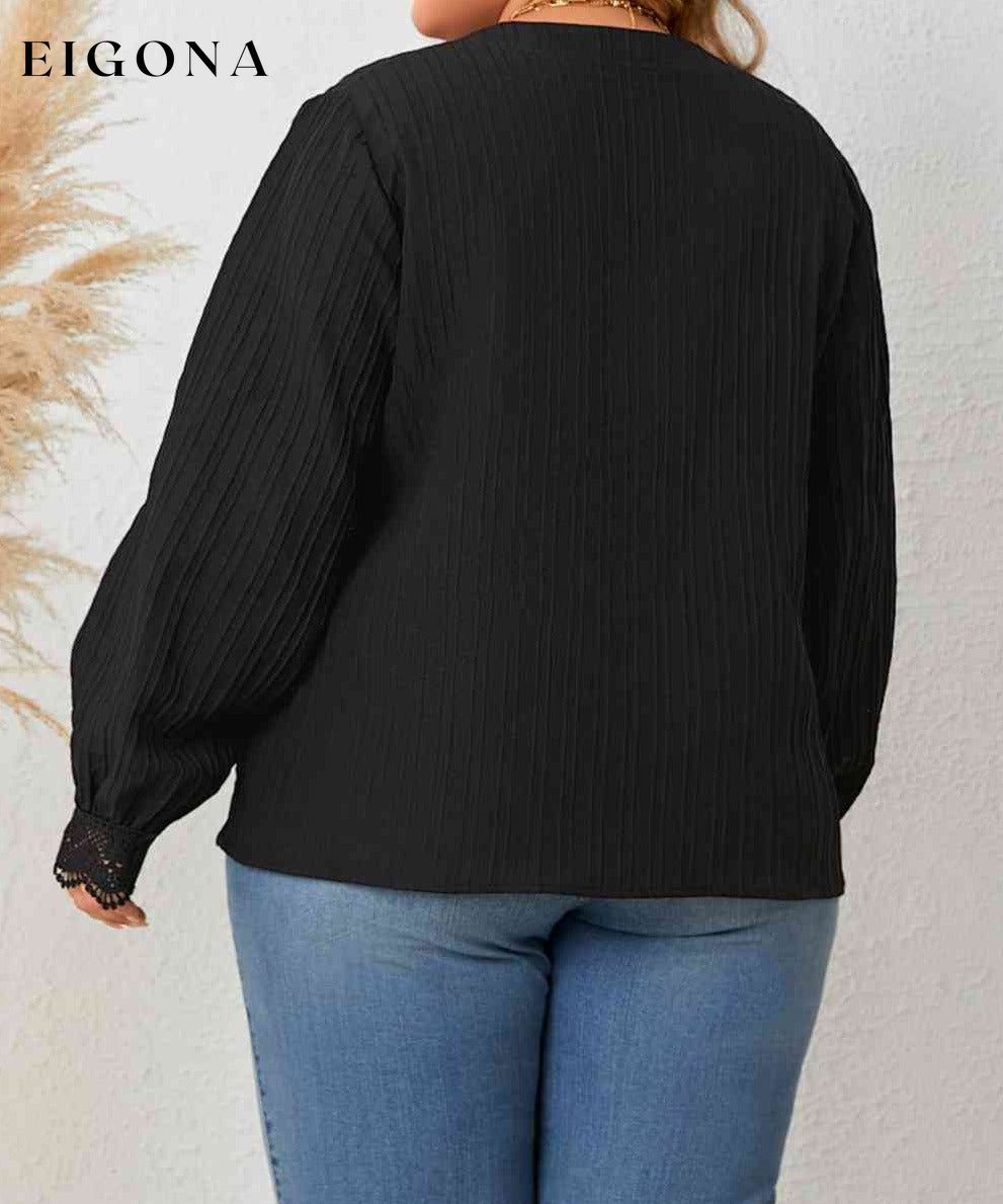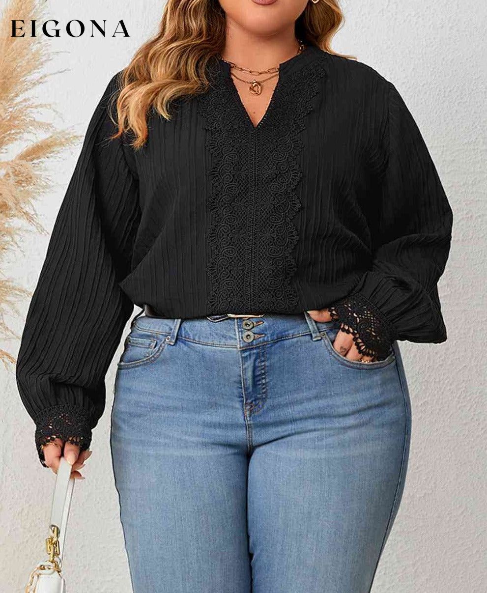 Plus Size Notched Neck Lace Detail Blouse