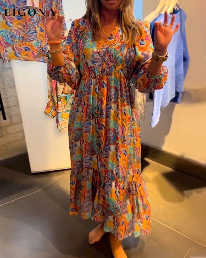 Print V neck A-Line Maxi Dress