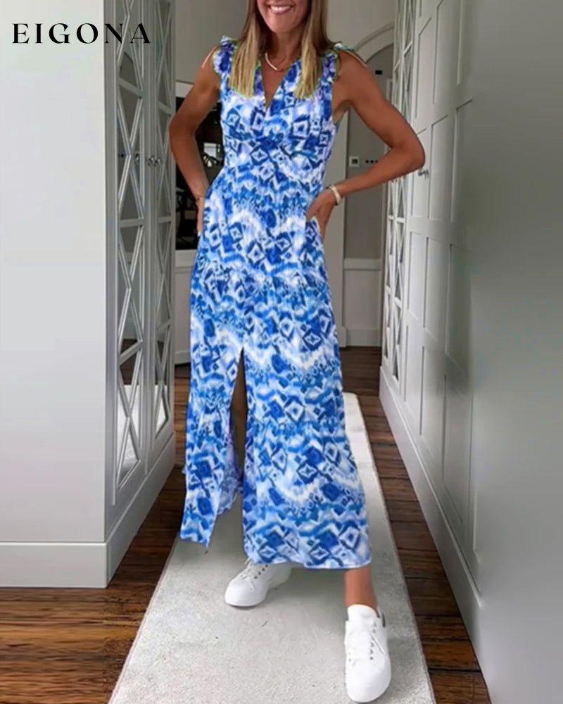Printed Sleeveless Slit Dress