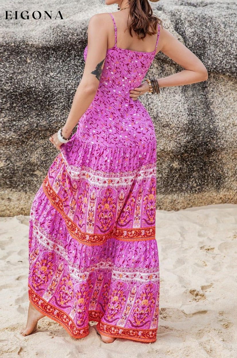 Printed Straight Neck Sleeveless Split Maxi Dress